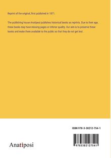 Reprint of the original, first published in 1871. The publishing house Anatiposi publishes historical books as reprints. Due to their age, these books may have missing pages or inferior quality. Our aim is to preserve these books and make them available to the public so that they do not get lost.