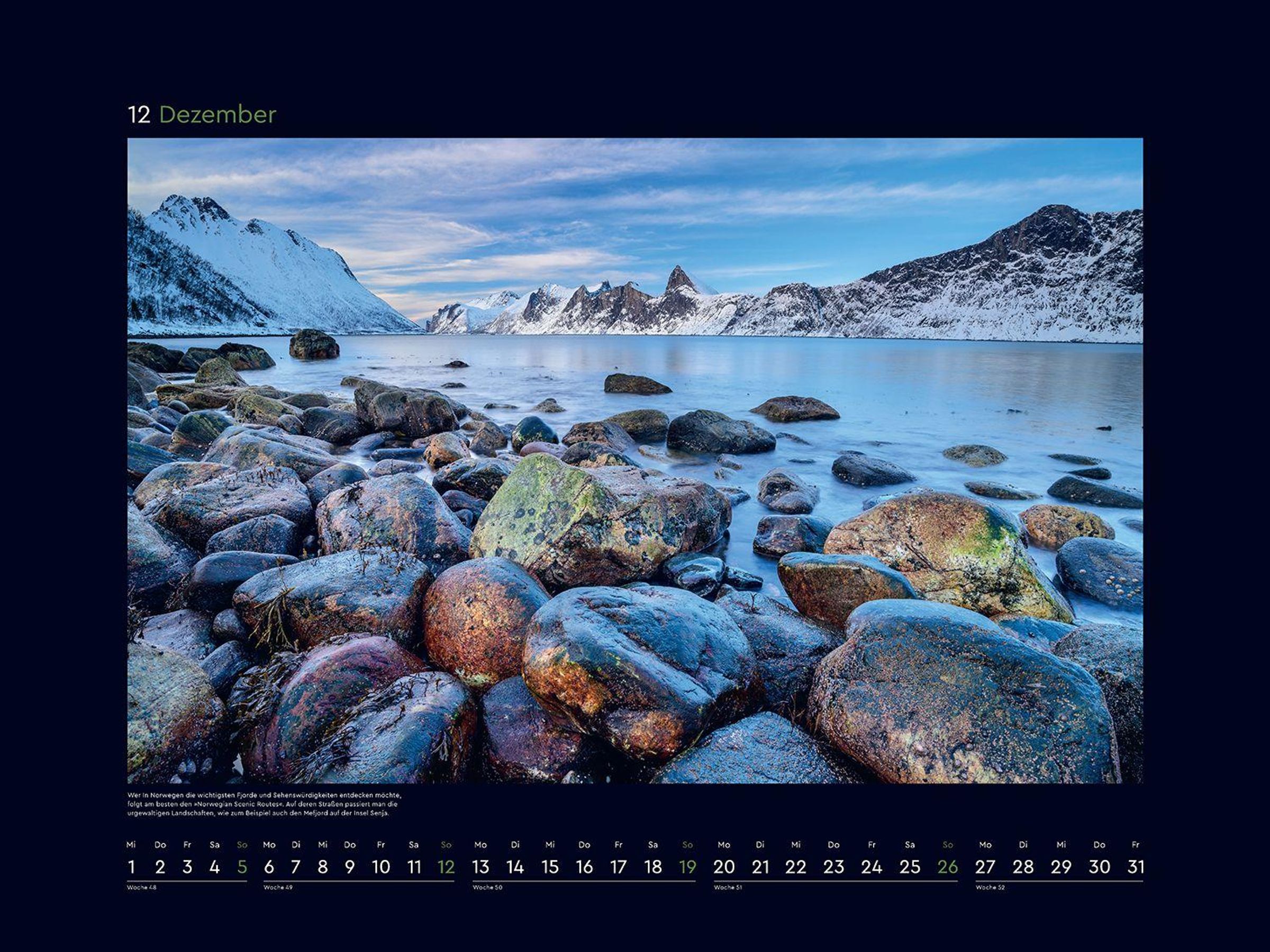 Monat für Monat wartet ein bildstarkes Highlight auf Entdeckung, und ein ansprechendes Kalendarium sorgt für optimalen Nutzen. Die mattschwarzen Rahmen bilden einen starken Kontrast zu den brillanten Fotografien.