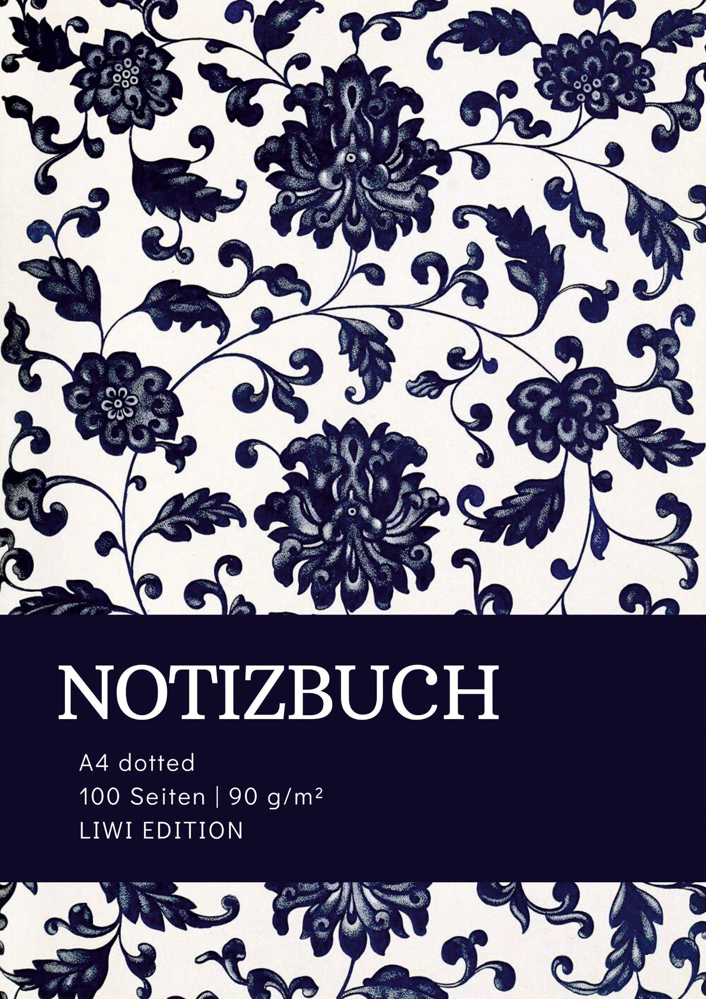 Notizbuch A4 dotted - 100 Seiten Soft Cover - floral blau - FSC Papier