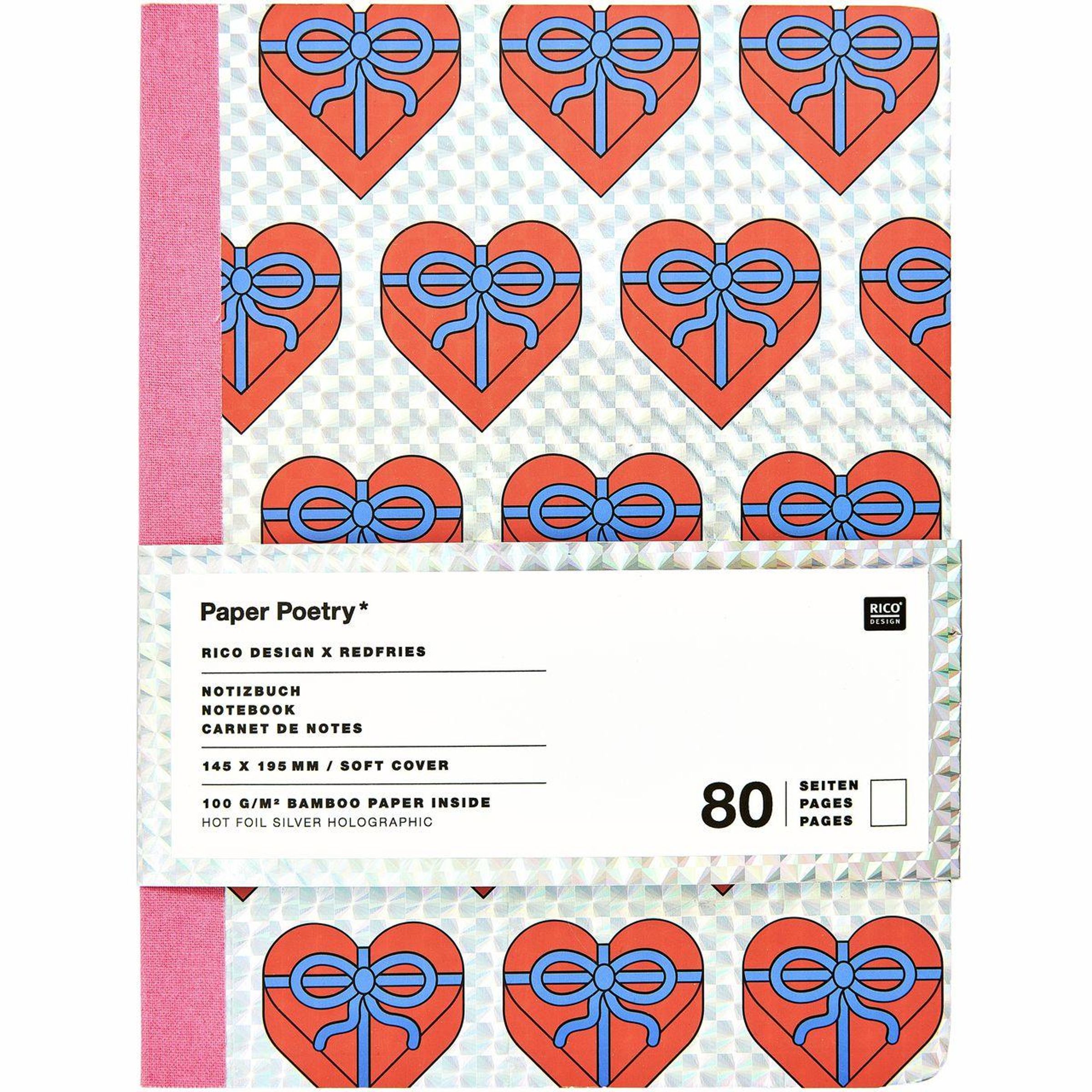 Notizbuch Eye Candy, Herzen, 14,5 x 19,5 cm, 80 Seiten