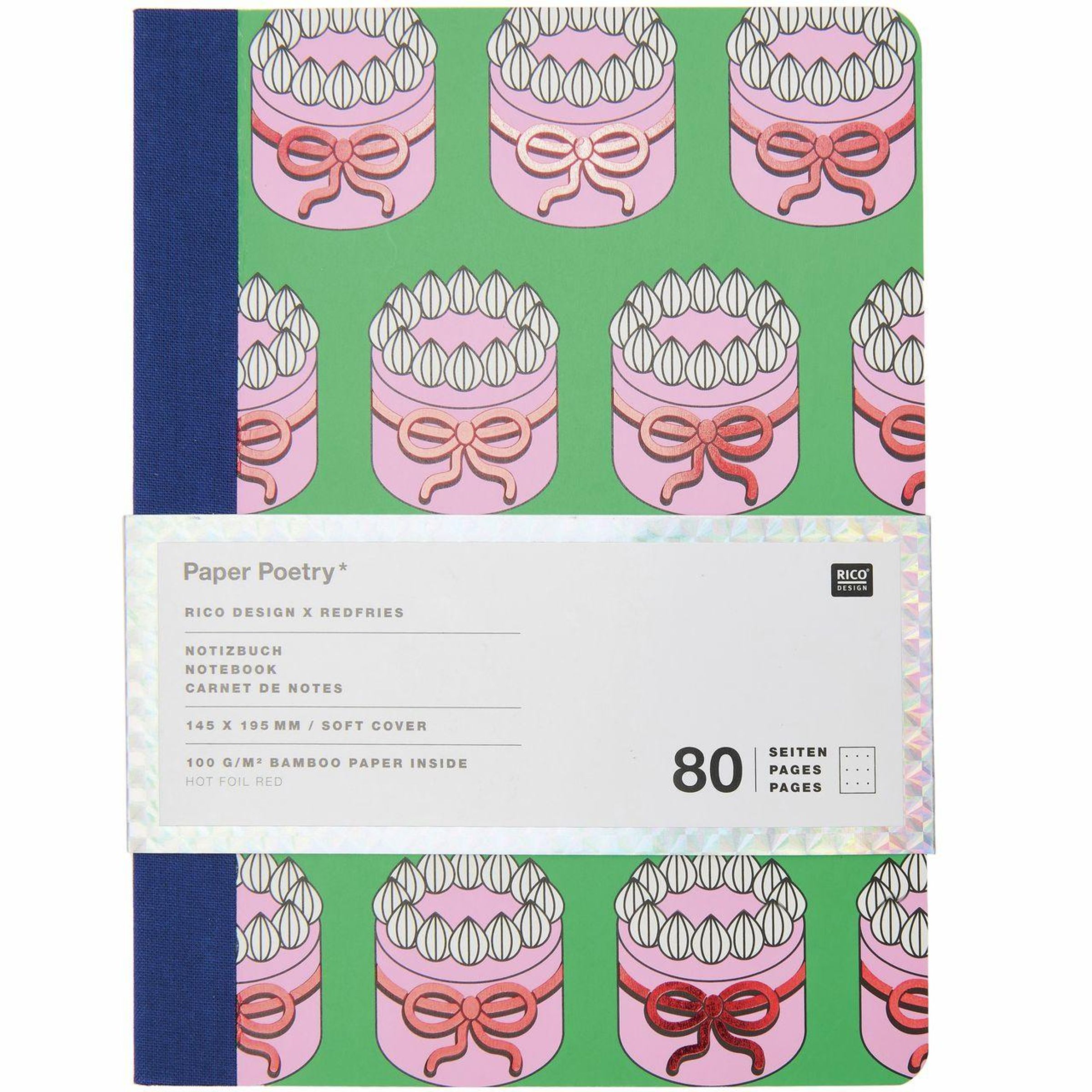 Das Notizbuch von Rico Design vereint Nachhaltigkeit und Stil in einem kompakten Format. Enthalten sind 80 Seiten aus 100 g / m² Bambuspapier. Die punktkarierten Innenseiten in zartem Rosa laden zum kreativen Schreiben und Zeichnen ein. Eine farbige Stoffkante verleiht dem Notizbuch einen eleganten Touch. Mit einer Größe von 14, 5 x 19, 5 cm passt es perfekt in jede Tasche und ist der ideale Begleiter für unterwegs.