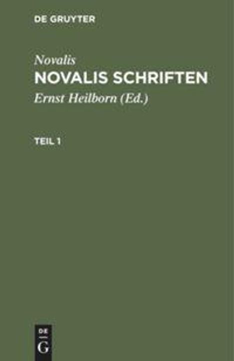 Novalis: Novalis: Novalis Schriften. Teil 1, Buch, Buch