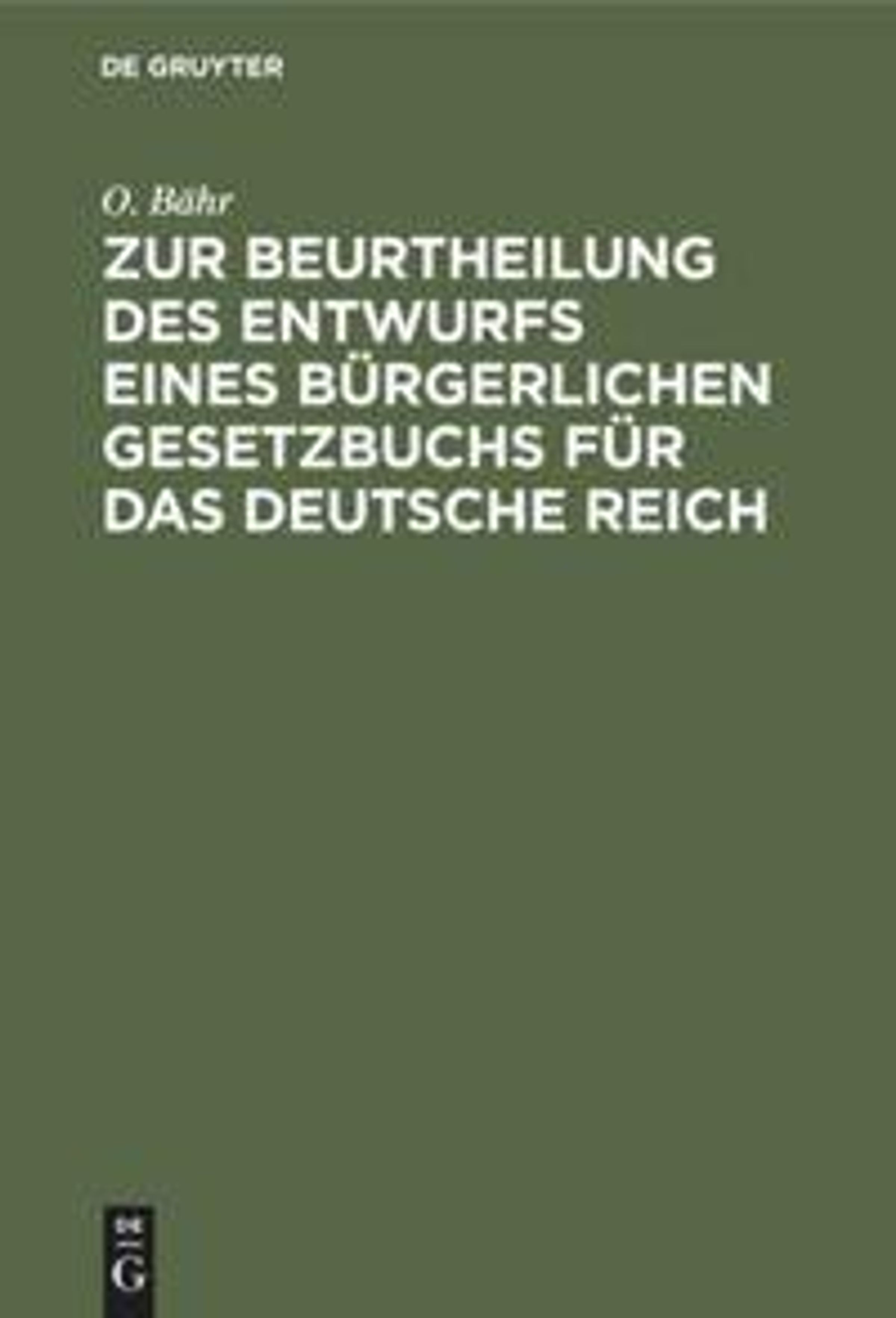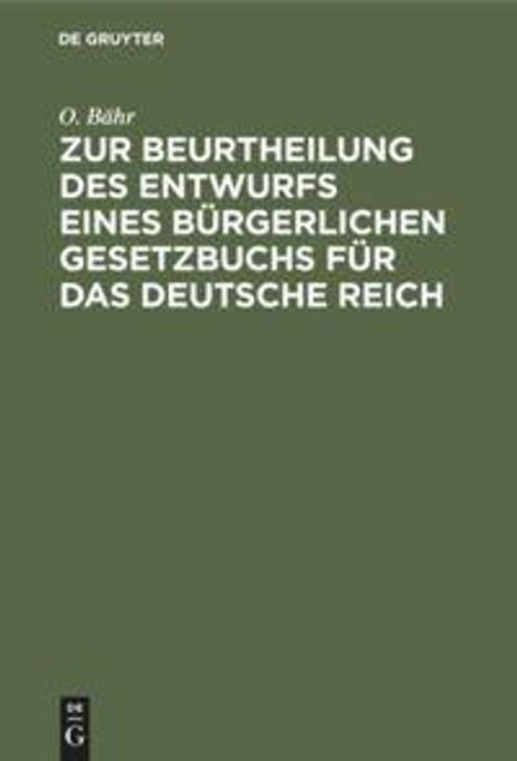 O. Bähr: Zur Beurtheilung des Entwurfs eines bürgerlichen Gesetzbuchs für das Deutsche Reich, Gebunden