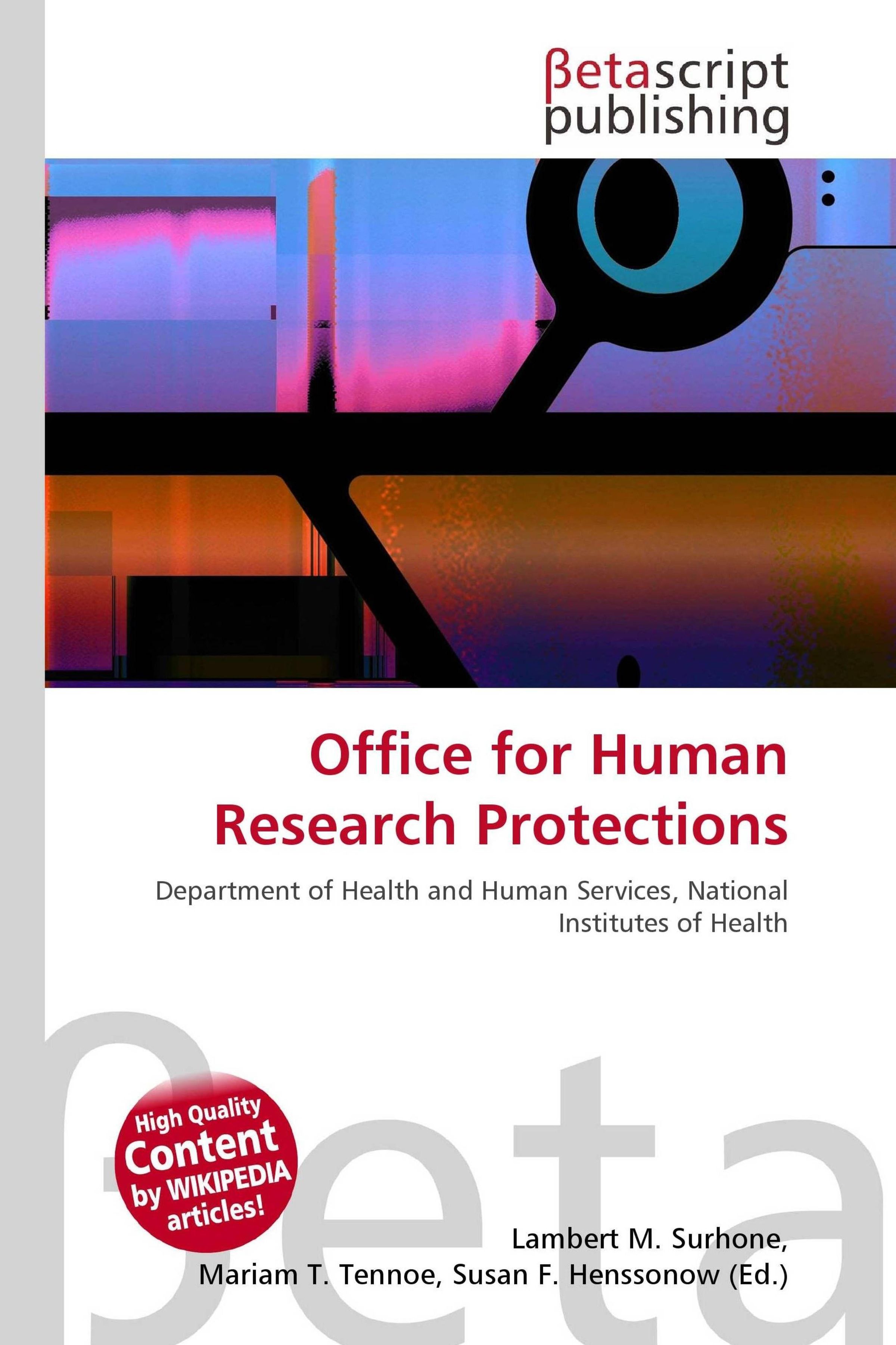 "Office for Human Research Protections" steht in roter Schrift über einer abstrakten Illustration mit violetten und blauen Tönen., Buch