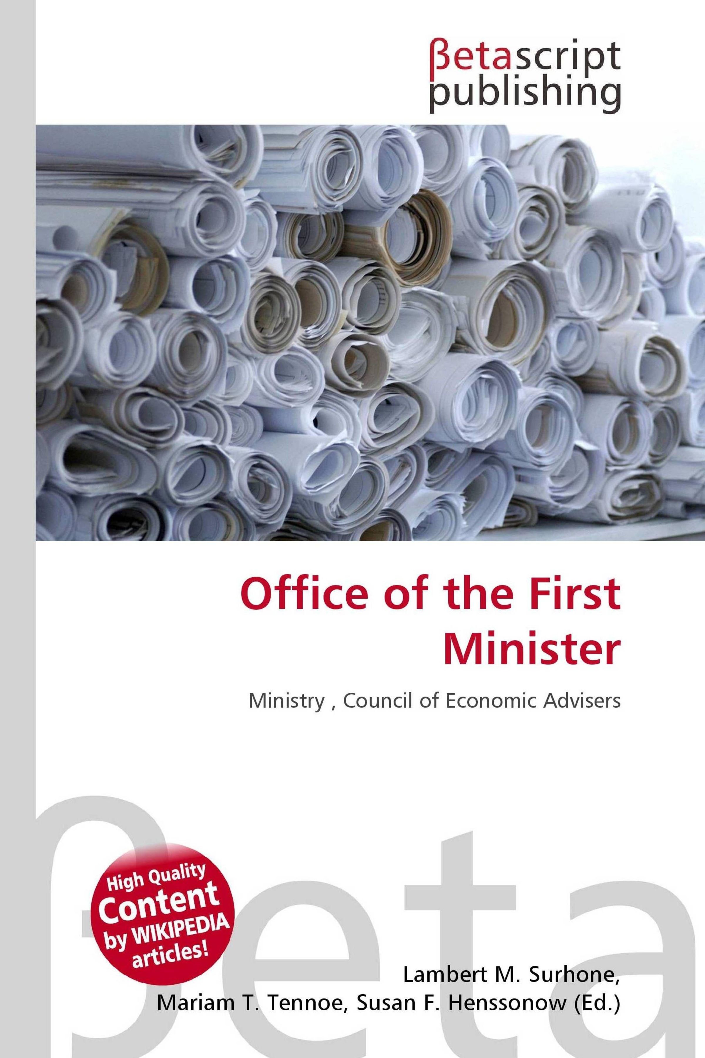 Please note that the content of this book primarily consists of articles available from Wikipedia or other free sources online. The Office of the First Minister is a portfolio within the Scottish Government. The office is responsible for the running of the government. he Scottish Government (Scottish Gaelic: Riaghaltas na h-Alba) is the executive arm of the devolved government of Scotland. It was established in 1999 as the Scottish Executive, from the extant Scottish Office, and the term Scottish Executive (or Administration) remains its legal name under the Scotland Act 1998. Following the 2007 Scottish Parliament election, the term Executive was rebranded and changed to Government by the new Scottish National Party administration.