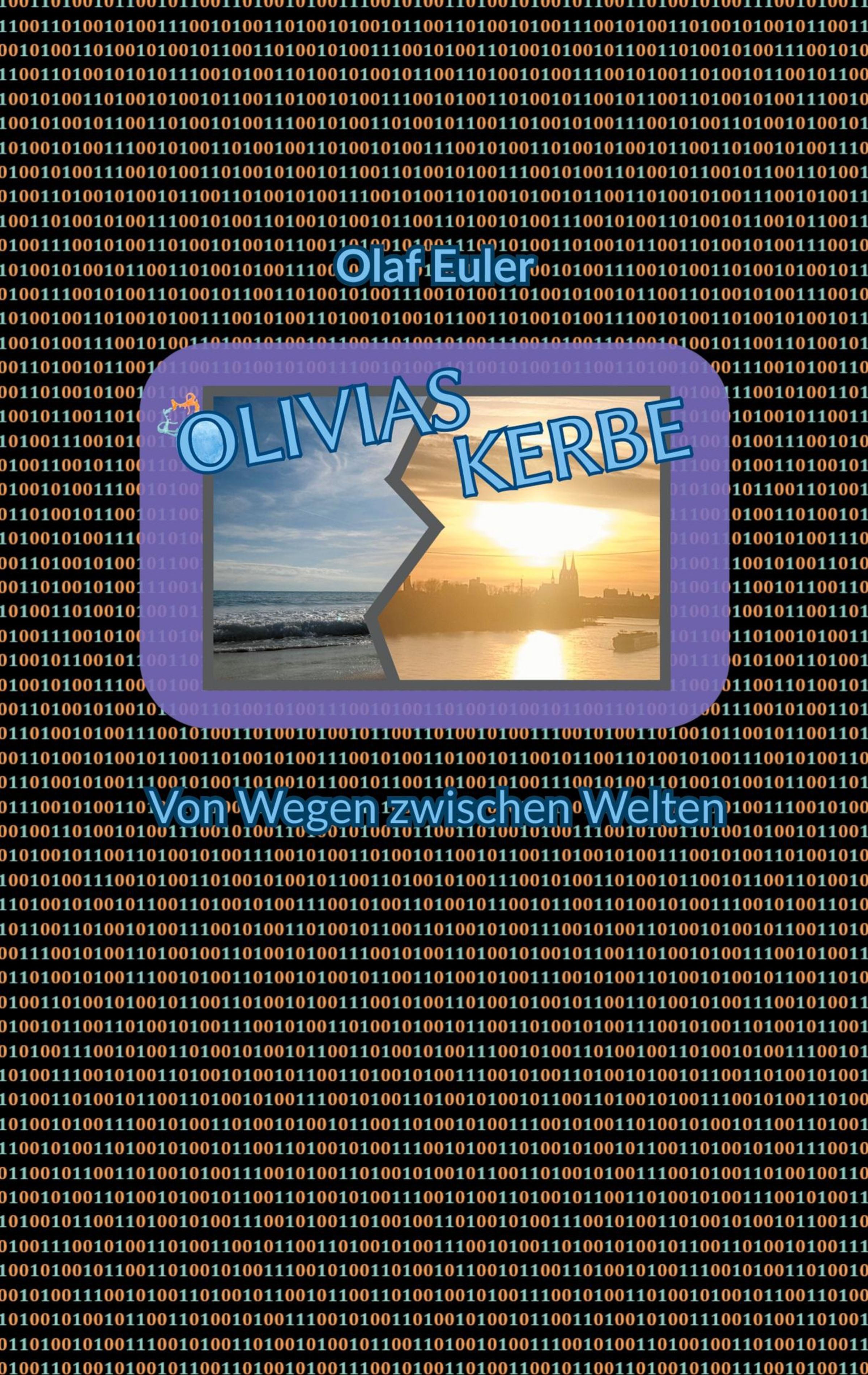 Text: Olaf Euler, OLIIVAS KERBE, Von Wegen zwischen Welten. Binärcode-Hintergrund und zerteiltes Landschaftsbild., Buch