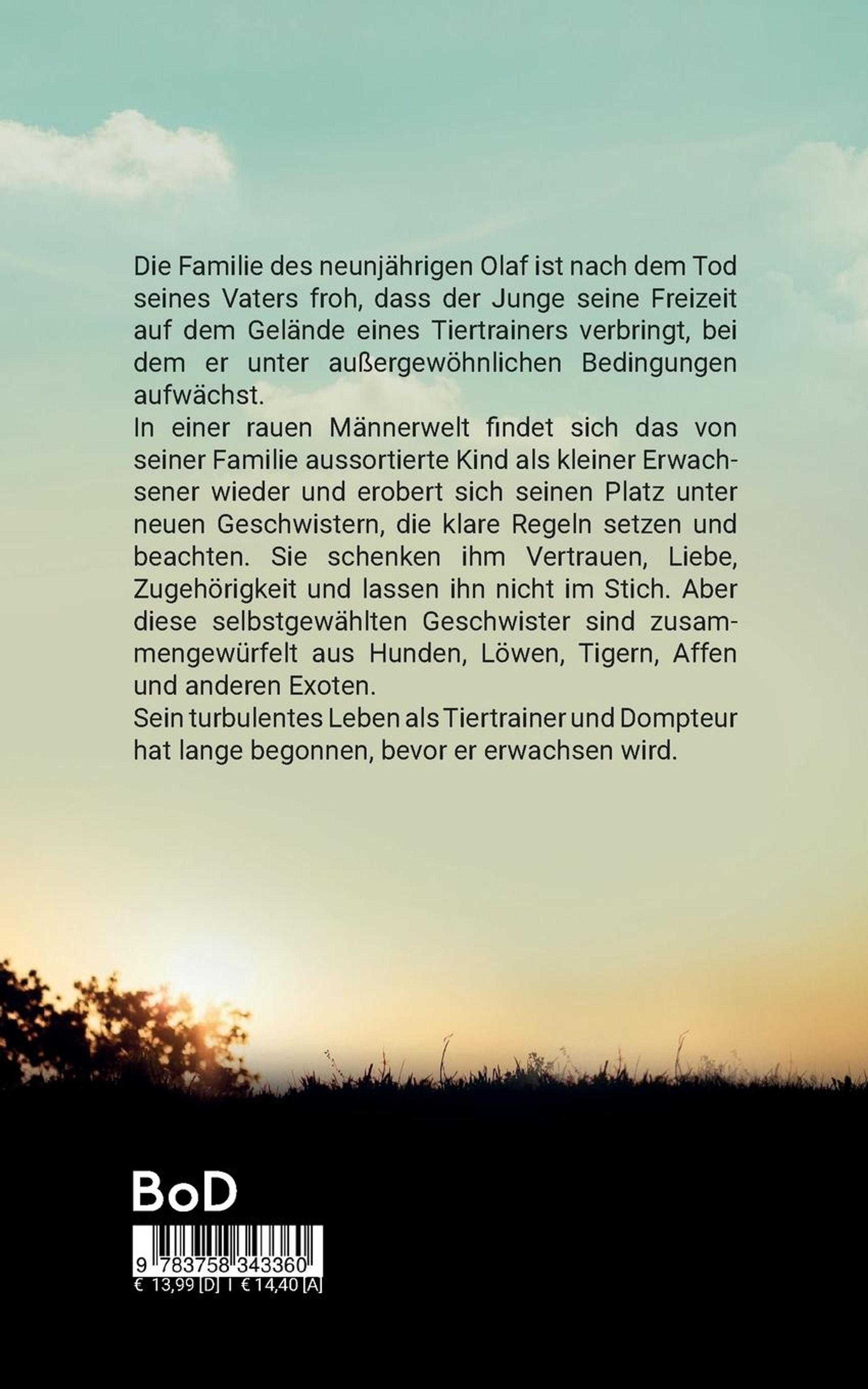 Die Familie des neunjährigen Olaf ist nach dem Tod seines Vaters froh, dass der Junge seine Freizeit auf dem Gelände eines Tiertrainers verbringt, bei dem er unter außergewöhnlichen Bedingungen aufwächst. In einer rauen Männerwelt findet sich das von seiner Familie aussortierte Kind als kleiner Erwachsener wieder und erobert sich seinen Platz unter neuen Geschwistern, die klare Regeln setzen und beachten. Sie schenken ihm Vertrauen, Liebe, Zugehörigkeit und lassen ihn nicht im Stich. Aber diese selbstgewählten Geschwister sind zusammengewürfelt aus Hunden, Löwen, Tigern, Affen und anderen Exoten. Sein turbulentes Leben als Tiertrainer und Dompteur hat lange begonnen, bevor er erwachsen wird.