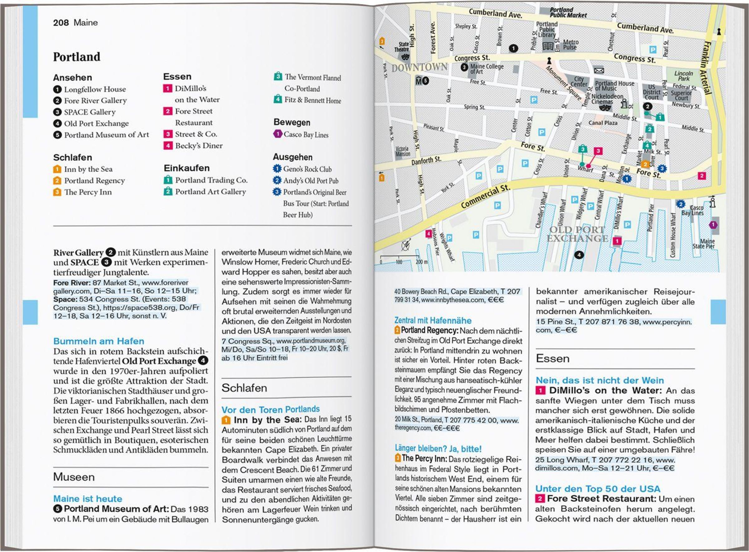 Die Karten: 8 Citypläne, 13 Tourenkarten, Übersichtskarte mit den Highlights in Neuengland, Schnellüberblick zu jeder Region plus eine große Reisekarte