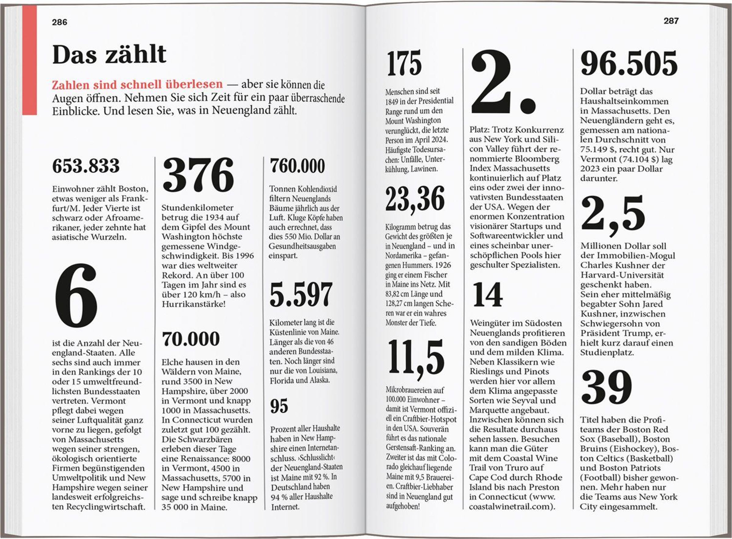 Oft europäischer als jede andere Region der USA - und doch ¿amerikanischer¿ als sie alle: Wie kriegt Neuengland das hin? Die aus den Bundesstaaten Massachusetts, Maine, New Hampshire, Vermont, Connecticut und Rhode Island bestehende Region im Nordosten der Vereinigten Staaten hält als eines der schönsten und interessantesten Reiseziele für alle, die Amerika wirklich verstehen wollen, etliche Aha-Erlebnisse bereit. Und für alle, die sich in den Great Outdoors, sei es auf den härtesten Hikingtrails in den White Mountains, den endlosen Wäldern Maines oder den schönsten Küsten im Osten, verlieren wollen, Überdosen an frischer Luft, Adrenalin und Muskelkater. Folgen Sie einfach den Touren und Lieblingsorten von Ole Helmhausen.