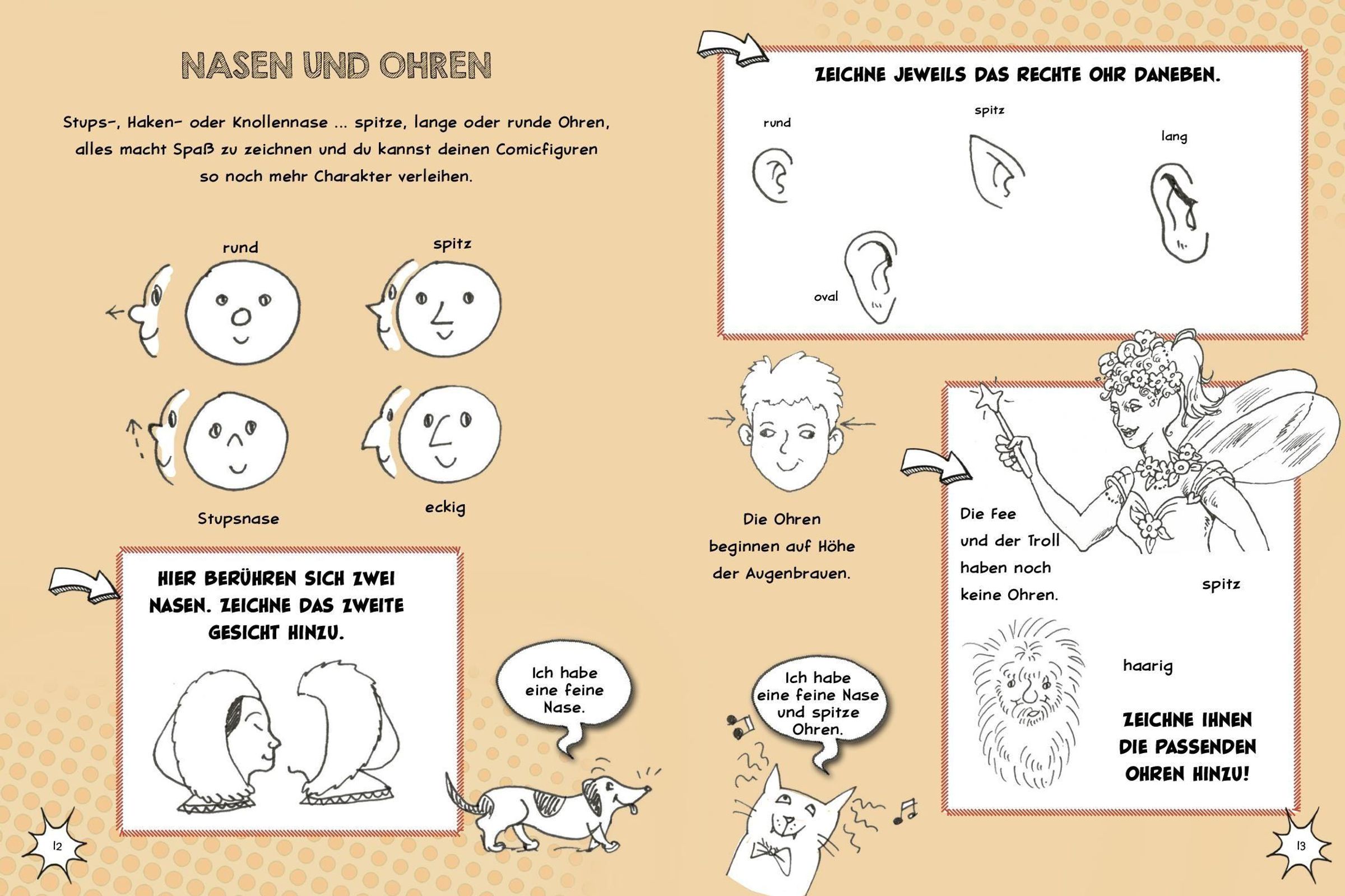 Die große Vielfalt an Motiven macht den Einstieg leicht: lustige Schulabenteuer, Fantasy-Welten, Superhelden-Action, Tier-Comics, Slice-of-Life oder Science-Fiction -- du entscheidest, was du zeichnest. Das Übungsbuch zeigt dir, wie du Hintergründe vereinfachst, Perspektive spielerisch ausprobierst und mit Linien, Schraffuren und einfachen Effekten (Bewegungslinien, Speed-Effects, Sound-Words) Atmosphäre schaffst. Außerdem lernst du, Fehler als Freunde zu sehen: skizzieren, verbessern, neu versuchen -- bis du zufrieden bist. Dank klarer Schritt-für-Schritt-Anleitungen, Beispielen und Platz für eigene Skizzen kommst du sicher voran, baust Selbstvertrauen auf und entwickelst deinen ganz persönlichen Zeichenstil.