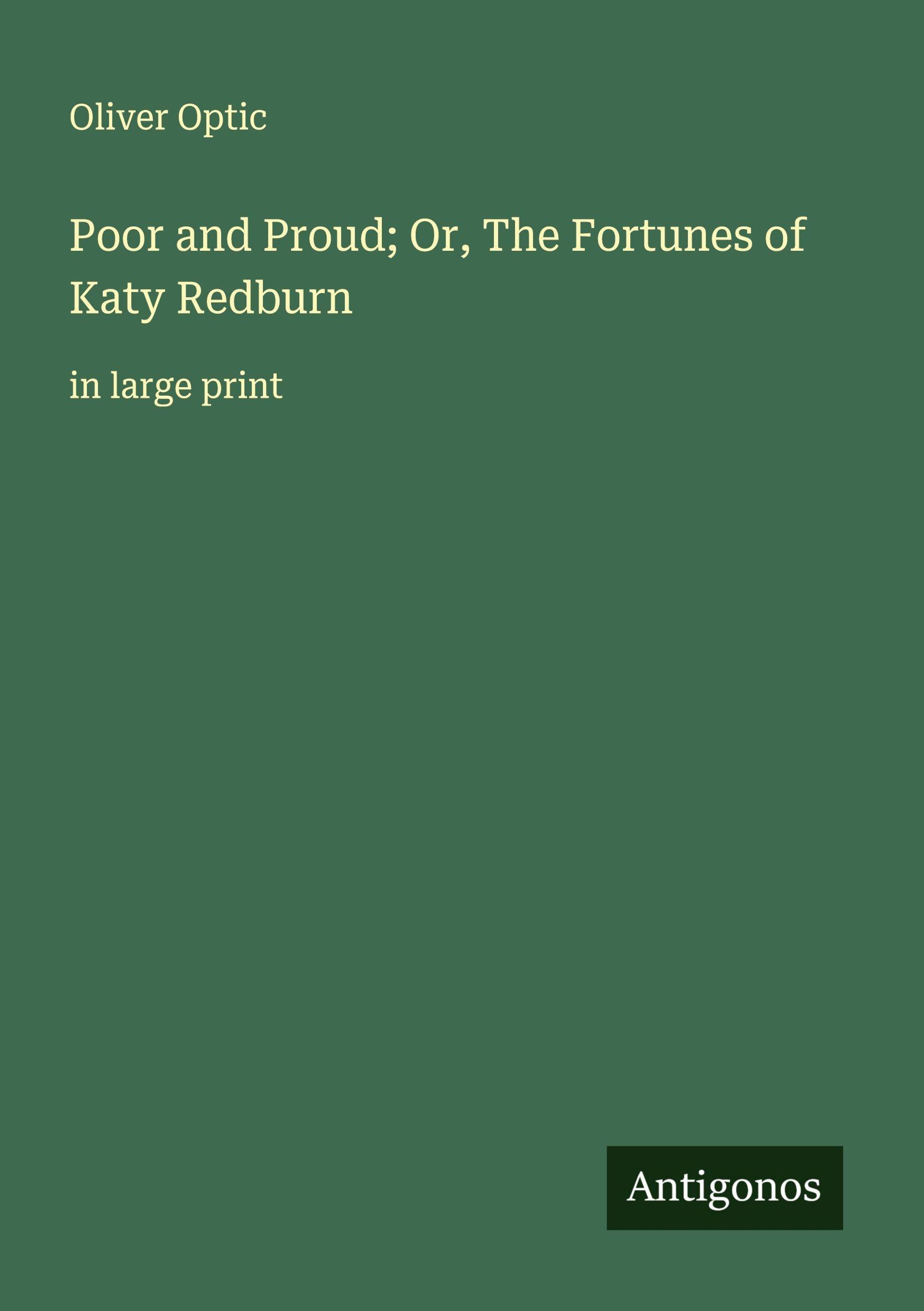 Oliver Optic: Poor and Proud; Or, The Fortunes of Katy Redburn, Kartoniert / Broschiert
