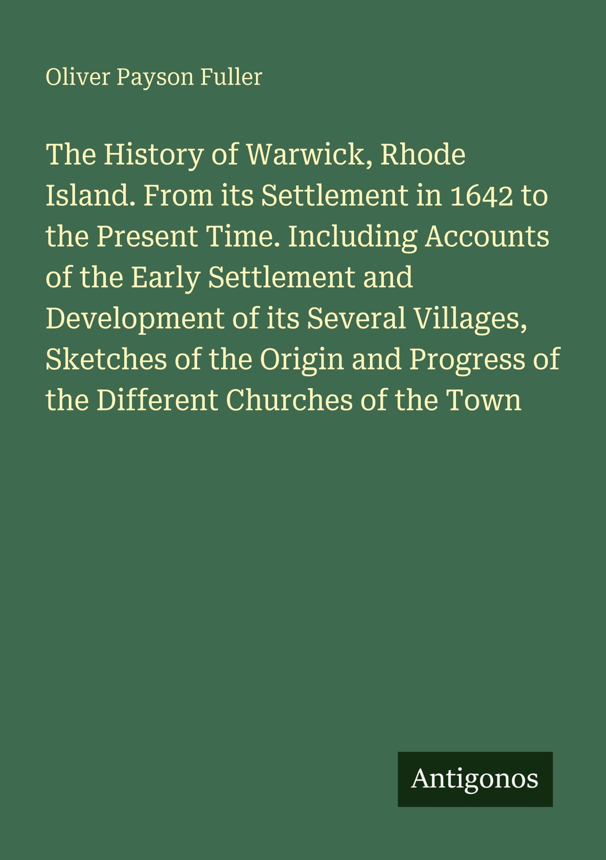 The History of Warwick, Rhode Island. From its Settlement in 1642 to the Present Time. Including Accounts of the Early Settlement and Development of its Several Villages, Sketches of the Origin and Progress of the Different Churches of the Town