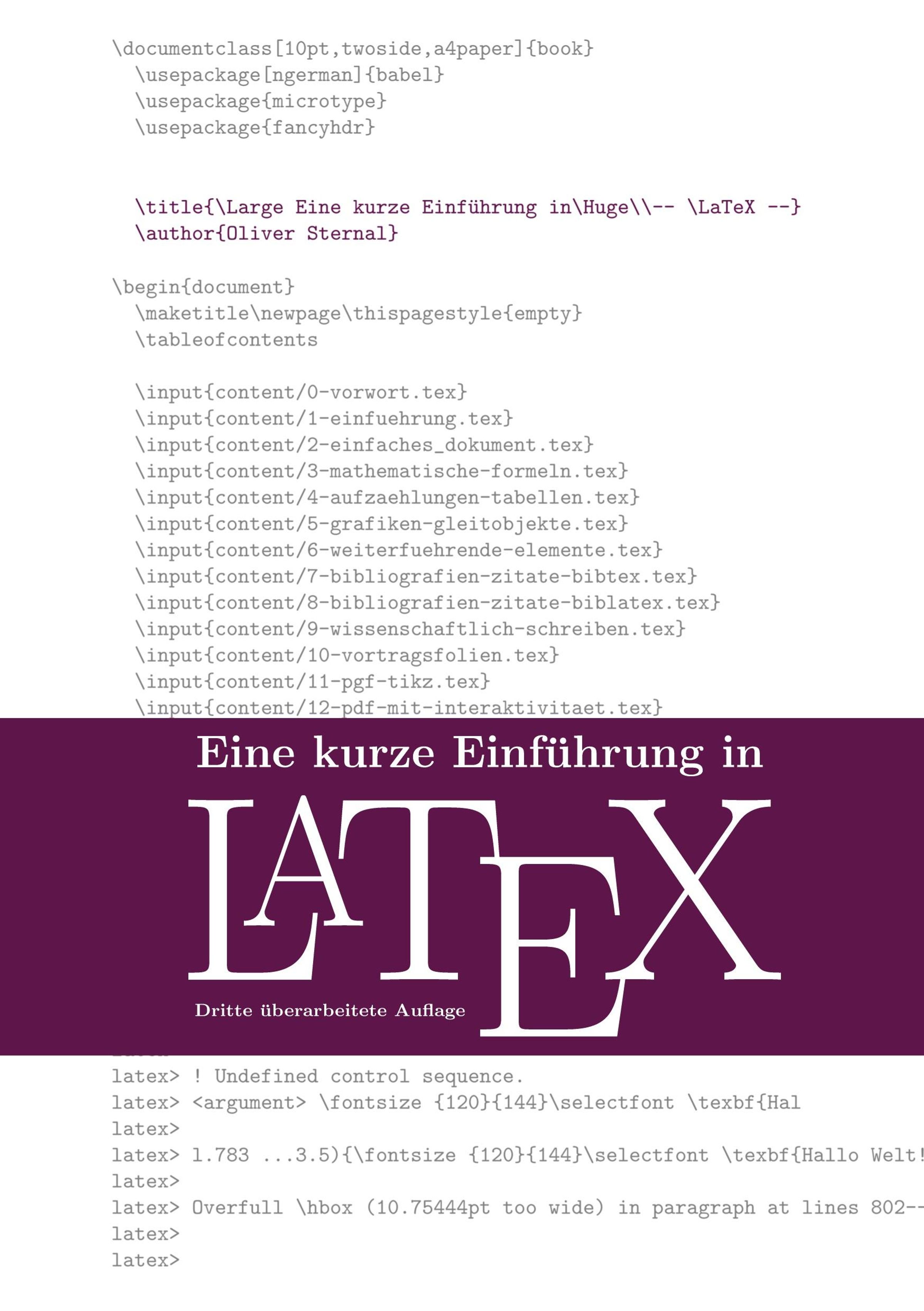 "Eine kurze Einführung in LaTeX" entstand in den Jahren 2006 bis 2009 als Vorlesungsskript und ist nicht als umfassendes Nachschlagewerk gedacht. Das Buch soll stattdessen Anfängerinnen und Anfängern, die noch keine Berührungspunkte mit LaTeX hatten und nun ihre ersten Schritte gehen wollen, einen leichten Einstieg in die Sprache und ihre Grundelemente geben. Darüber hinaus gibt das Buch auch einige Einblicke in fortgeschrittene Techniken.