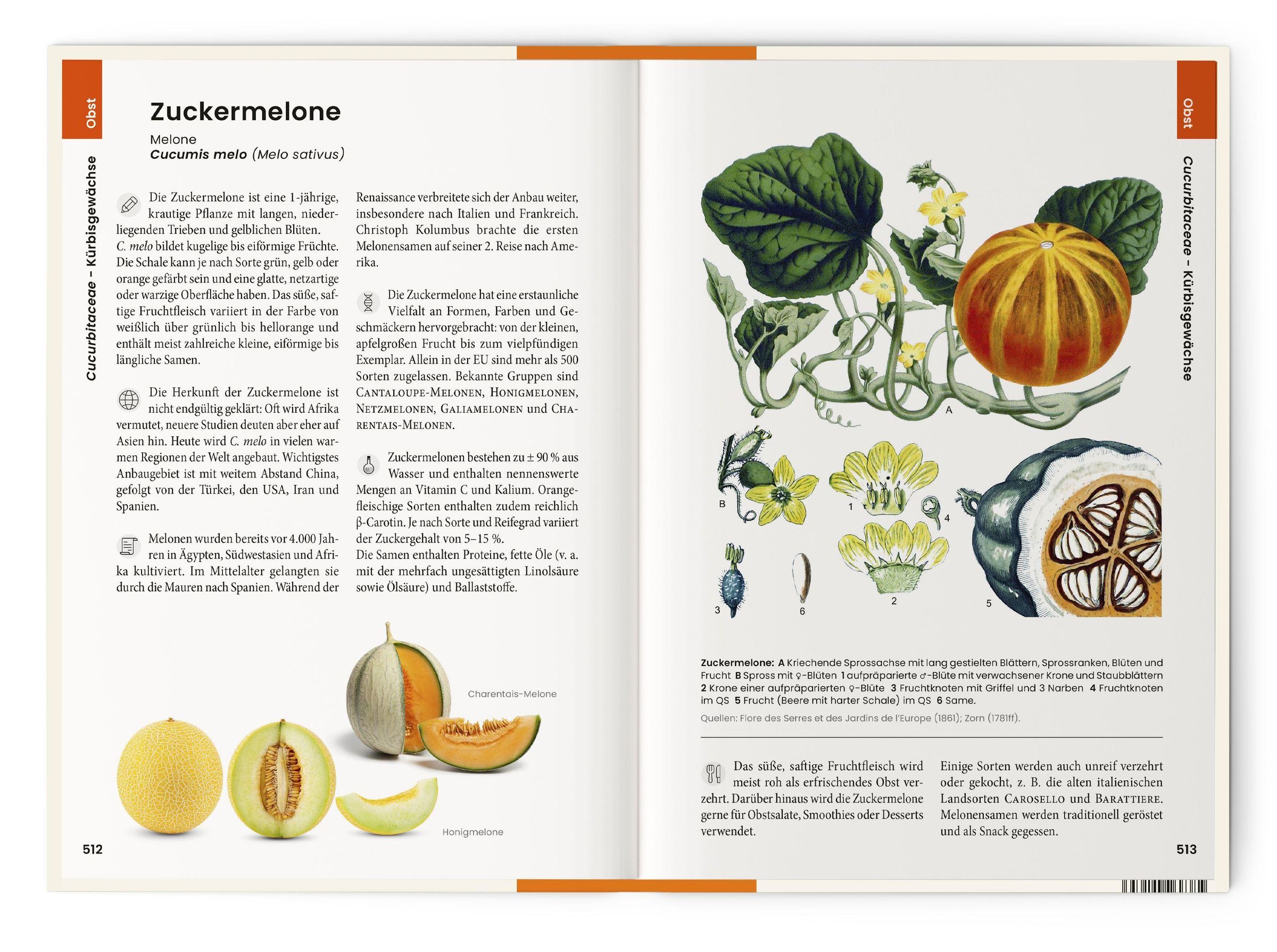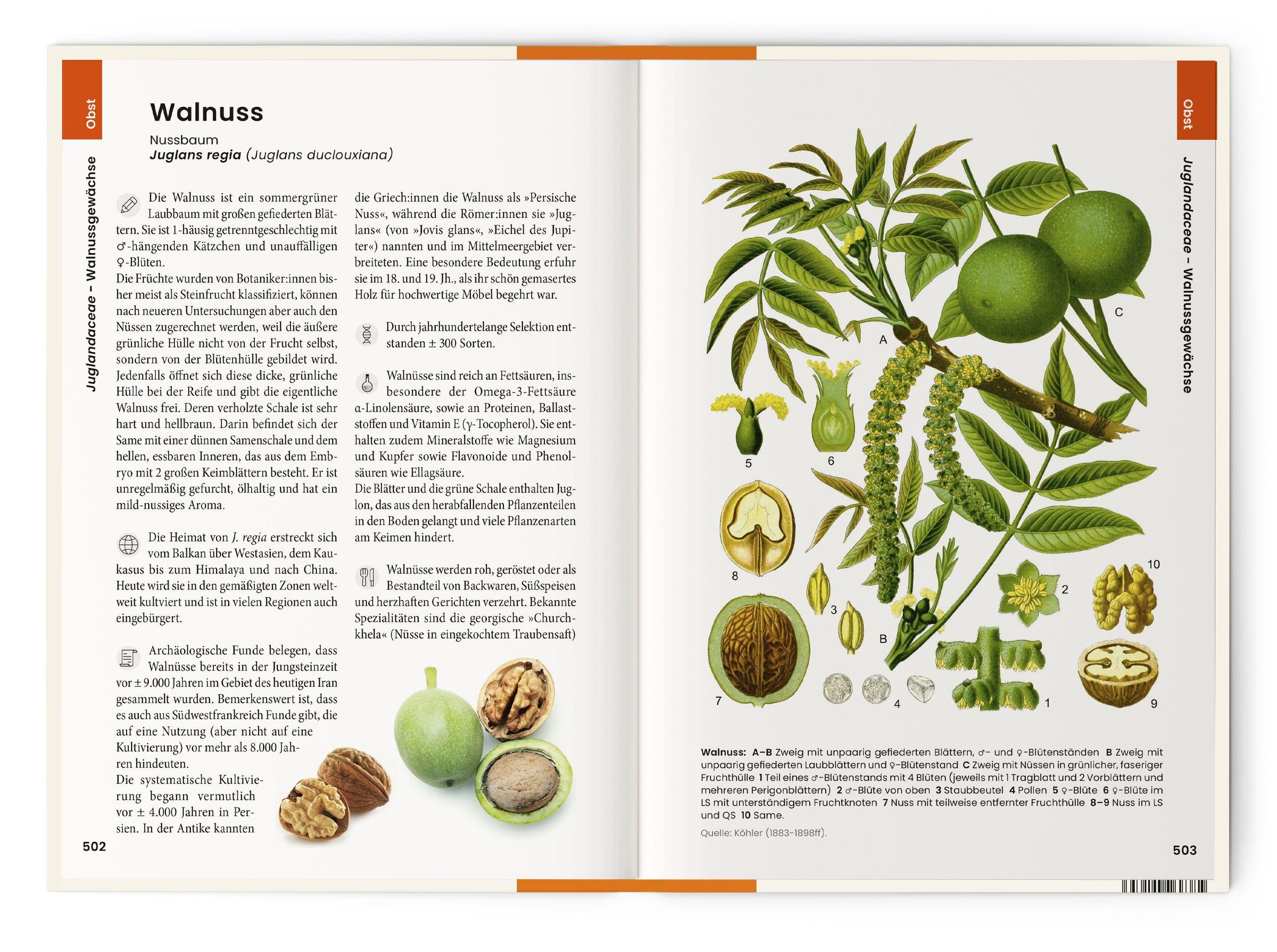 - Großformatige Illustrationen/Abbildungen mit Legende (wissenschaftlicher Name, Pflanzenfamilie, deutsche Pflanzennamen, Handelsnamen, Beschreibung der Vorkommen und Anbaugebiete) plus 2-3 kleine Detai