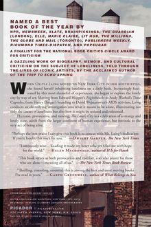 When Olivia Laing moved to New York City in her mid-thirties, she found herself inhabiting loneliness on a daily basis. Increasingly fascinated by this most shameful of experiences, she began to explore the lonely city by way of art. Moving from Edward Hopper's Nighthawks to Andy Warhol's Time Capsules, from Henry Darger's hoarding to David Wojnarowicz's AIDS activism, Laing conducts an electrifying investigation into what it means to be alone, illuminating not only the causes of loneliness but also how it might be resisted and redeemed.