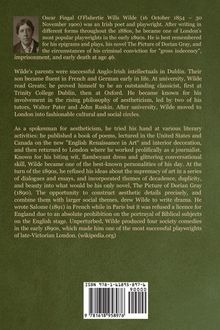 Oscar Wilde, geb. 1854 in Dublin, studierte erst am Trinity College in Dublin, dann in Oxford, wo er sich mehr und mehr einem Ästhetizismus zuwandte, den er nicht nur in der Kunst, sondern auch im Leben zum Maß aller Dinge machte. 1884 heiratete er in London; zwei Söhne wurden geboren. In den folgenden Jahren entfremdete er sich zunehmend von seiner Frau und wurde sich wohl seiner homoerotischen Neigungen deutlicher bewusst. Gleichzeitig nahm sein Ruhm stetig zu; in rascher Folge entstanden Essays, sein einziger Roman 'Das Bildnis des Dorian Gray', die Märchen, Erzählungen und mehrere Theaterstücke. 1895 wurde er wegen seiner Liebesbeziehung zum jungen Lord Alfred Douglas in einen Prozess mit dessen Vater verwickelt, der ihm zum Verhängnis wurde: Wilde wurde zu Zwangsarbeit verurteilt und war nun gesellschaftlich, aber auch künstlerisch erledigt. 1897 aus seiner Einzelzelle entlassen, floh er nach Frankreich, unternahm noch einige Reisen und starb 1900 resigniert in Paris.