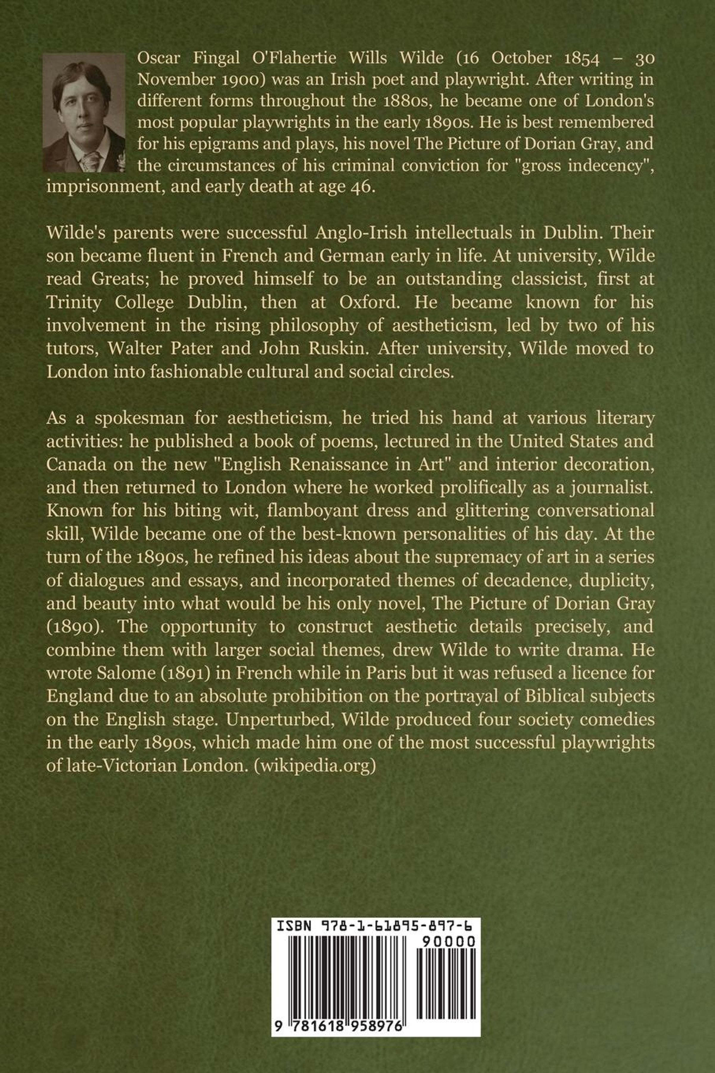 Oscar Fingal O'Flahertie Wills Wilde (16 October 1854 -- 30 November 1900) was an Irish poet and playwright. After writing in different forms throughout the 1880s, he became one of London's most popular playwrights in the early 1890s. He is best remembered for his epigrams and plays, his novel The Picture of Dorian Gray, and the circumstances of his criminal conviction for "gross indecency", imprisonment, and early death at age 46. Wilde's parents were successful Anglo-Irish intellectuals in Dublin. Their son became fluent in French and German early in life. At university, Wilde read Greats; he proved himself to be an outstanding classicist, first at Trinity College Dublin, then at Oxford. He became known for his involvement in the rising philosophy of aestheticism, led by two of his tutors, Walter Pater and John Ruskin. After university, Wilde moved to London into fashionable cultural and social circles. As a spokesman for aestheticism, he tried his hand at various literary activities: he published a book of poems, lectured in the United States and Canada on the new "English Renaissance in Art" and interior decoration, and then returned to London where he worked prolifically as a journalist. Known for his biting wit, flamboyant dress and glittering conversational skill, Wilde became one of the best-known personalities of his day. At the turn of the 1890s, he refined his ideas about the supremacy of art in a series of dialogues and essays, and incorporated themes of decadence, duplicity, and beauty into what would be his only novel, The Picture of Dorian Gray (1890). The opportunity to construct aesthetic details precisely, and combine them with larger social themes, drew Wilde to write drama. He wrote Salome (1891) in French while in Paris but it was refused a licence for England due to an absolute prohibition on the portrayal of Biblical subjects on the English stage. Unperturbed, Wilde produced four society comedies in the early 1890s, which made him one of the most successful playwrights of late-Victorian London. (wikipedia. org)