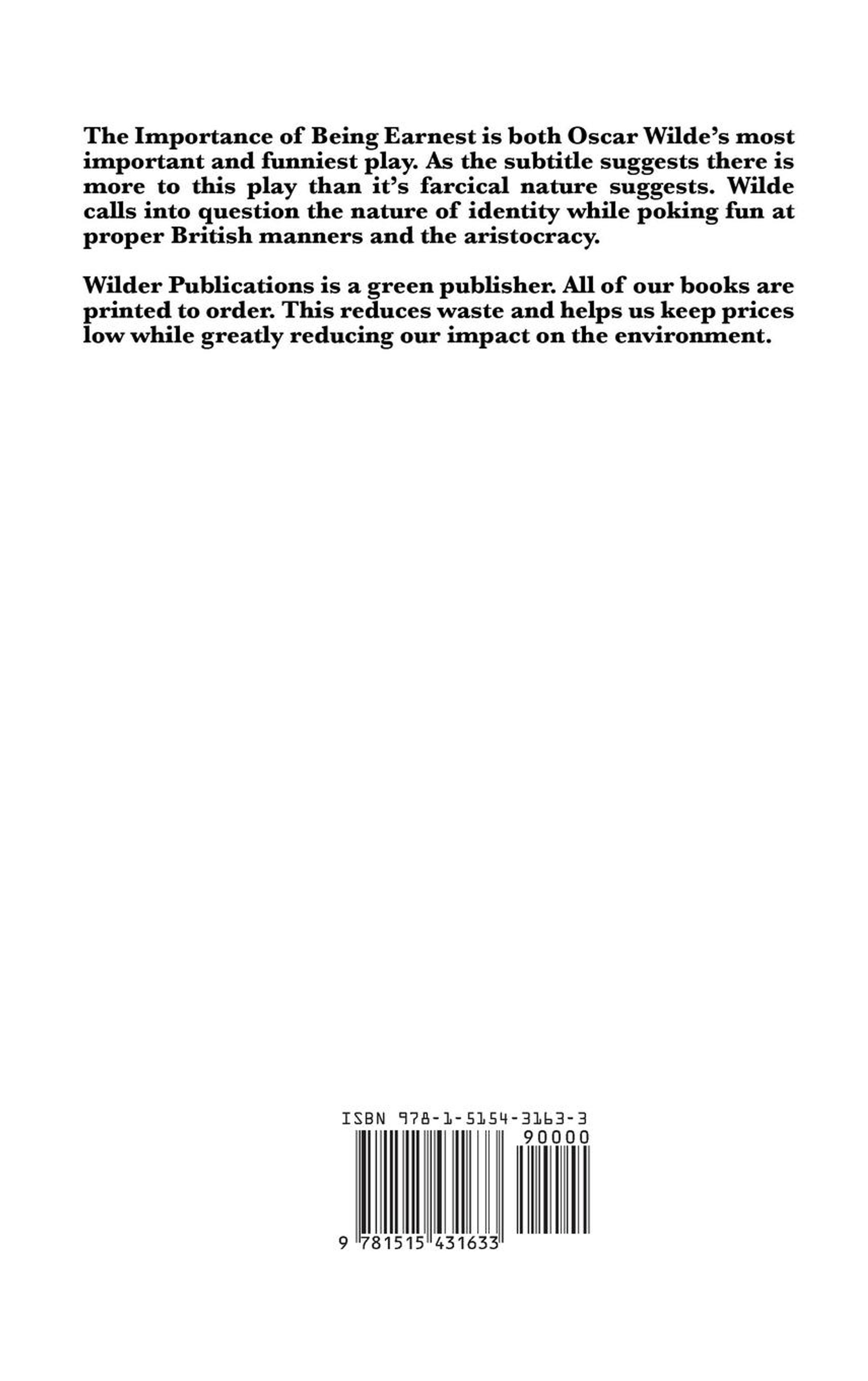 Oscar Wilde: The Importance of Being Earnest, Buch, Buch
