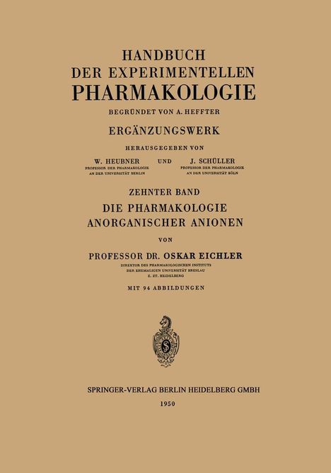Oskar Eichler: Die Pharmakologie Anorganischer Anionen, Kartoniert / Broschiert