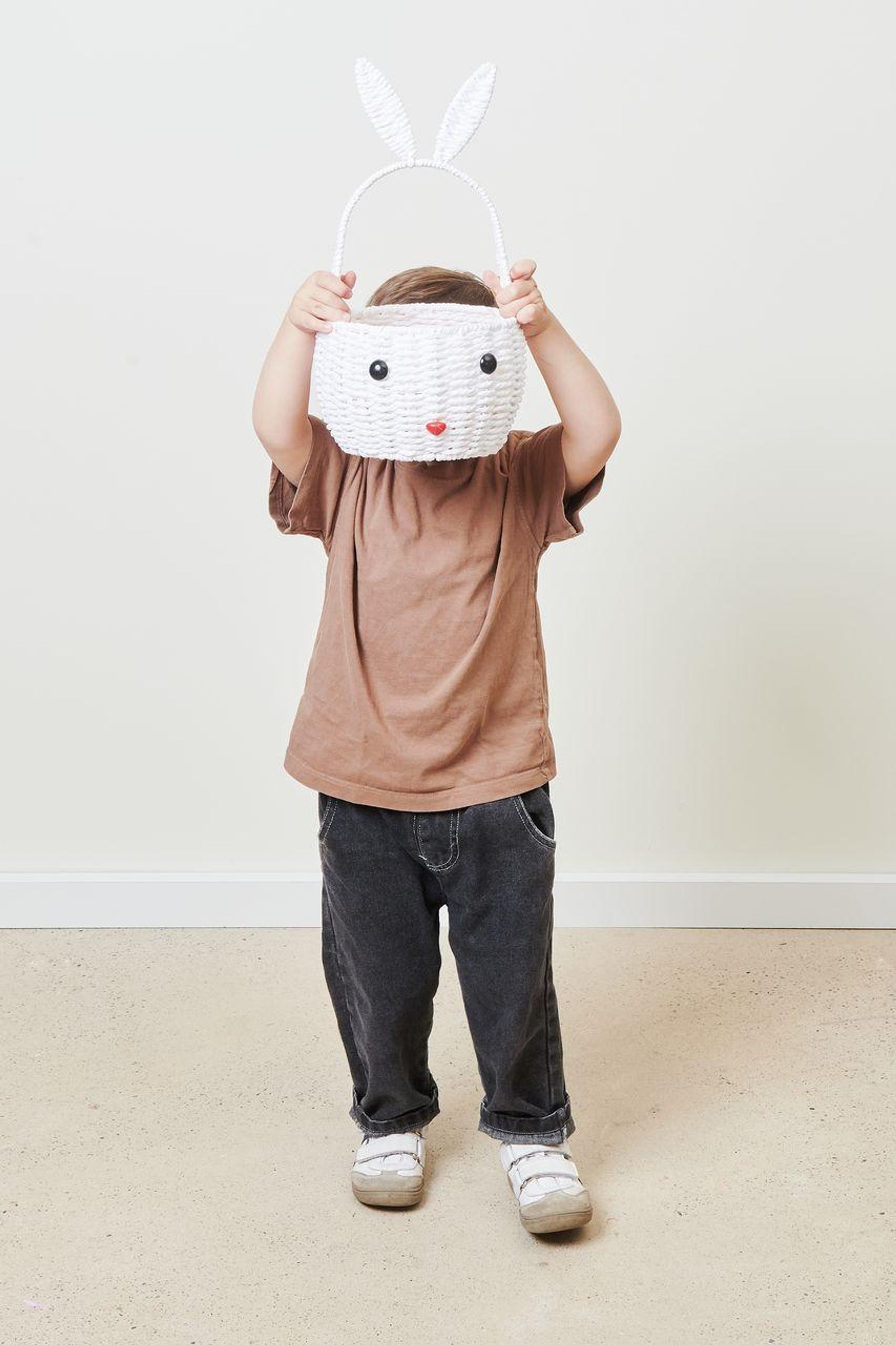 Osterkorb Hase mit Henkel, Weiß, 36,5 x Ø 18cm