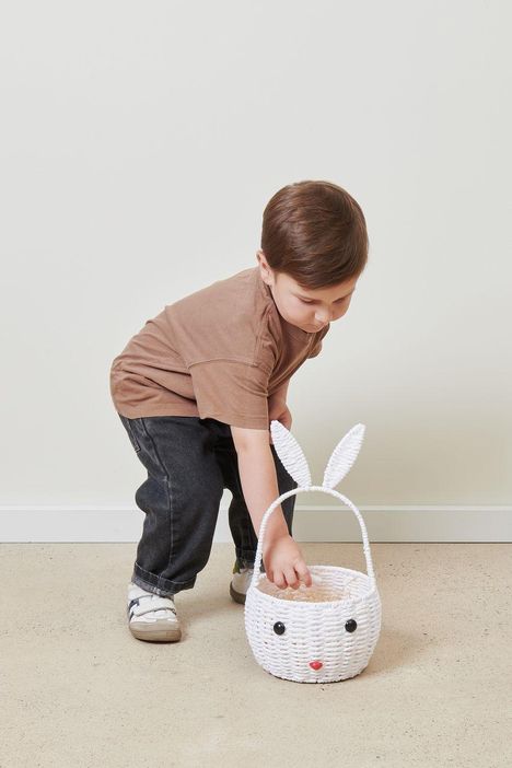 Osterkorb Hase mit Henkel, Weiß, 36,5 x Ø 18cm (Sonstige Artikel)