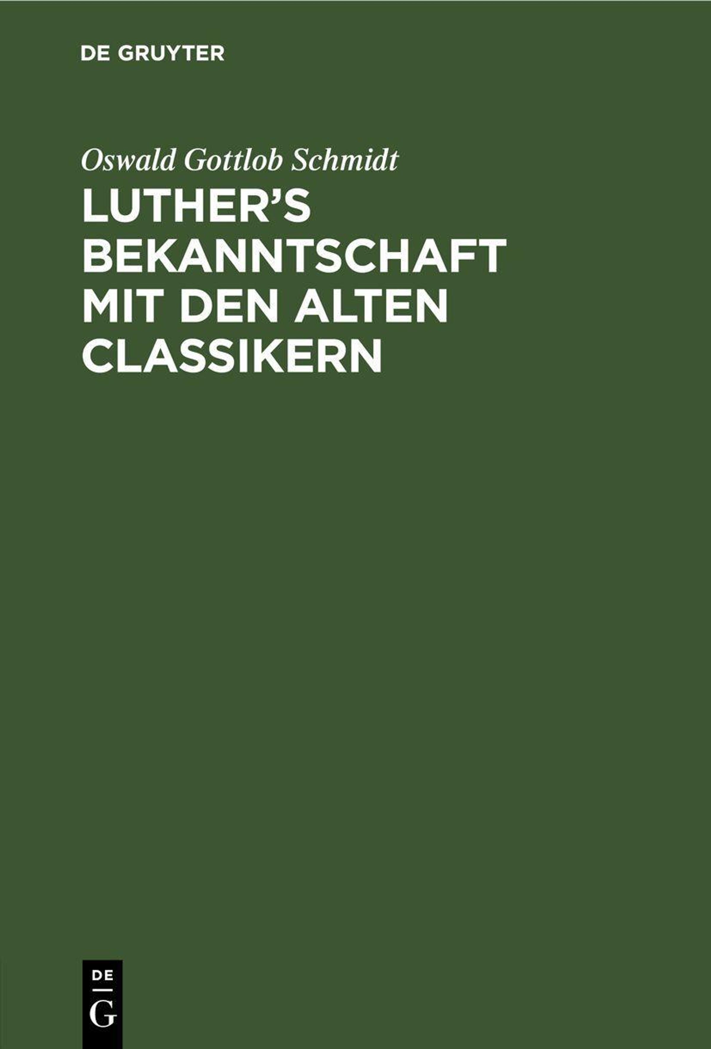 Oswald Gottlob Schmidt: Luther's Bekanntschaft mit den alten Classikern, Gebunden