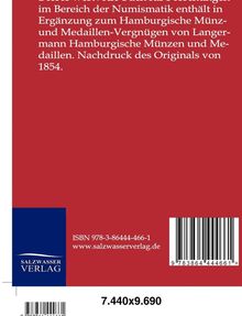 Dieses wertvolle Buch für Forschungen im Bereich der Numismatik enthält in Ergänzung zum Hamburgische Münz- und Medaillen-Vergnügen von Langermann Hamburgische Münzen und Medaillen. Nachdruck des Originals von 1854.
