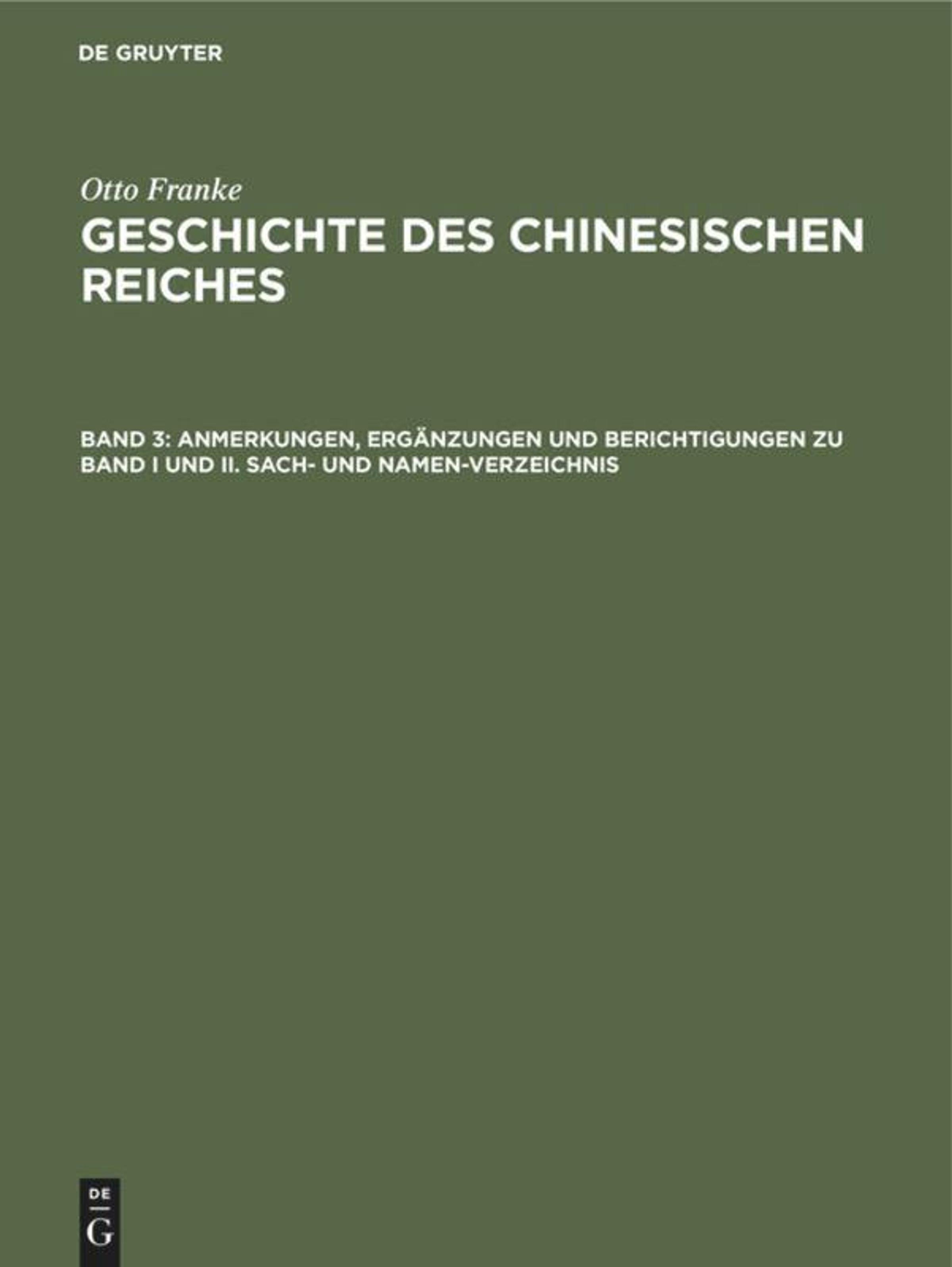 Otto Franke: Anmerkungen, Ergänzungen und Berichtigungen zu Band I und II. Sach- und Namen-Verzeichnis, Gebunden