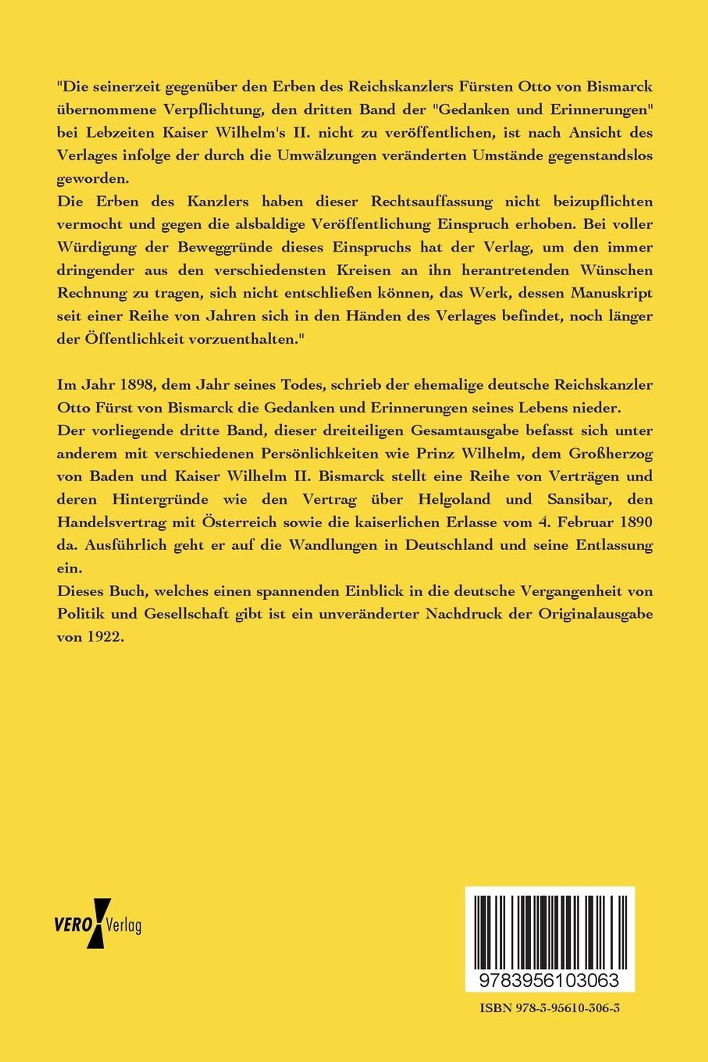 Otto Fürst von Bismarck: Gedanken und Erinnerungen, Buch, Buch