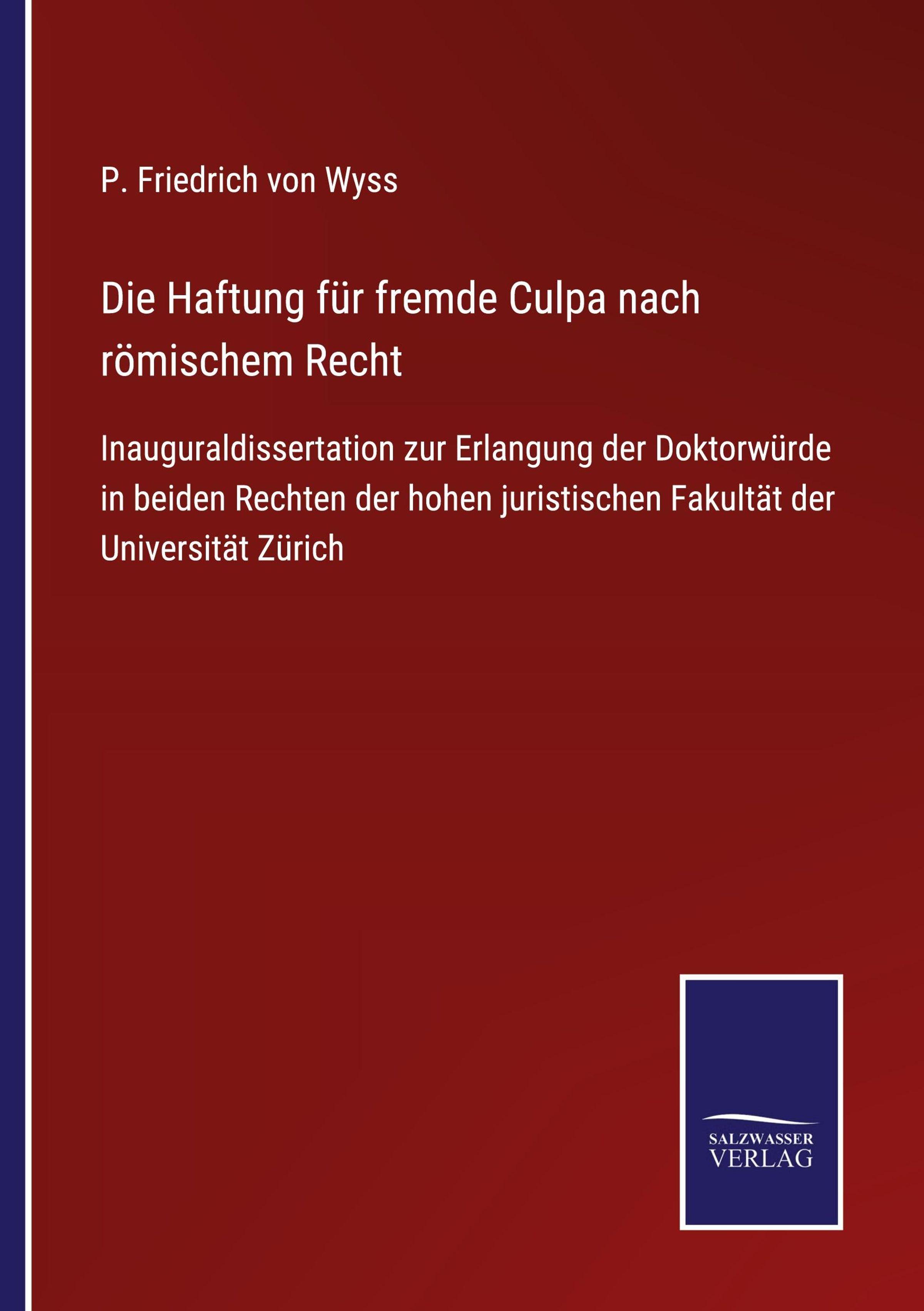 P. Friedrich Von Wyss: Die Haftung für fremde Culpa nach römischem Recht, Kartoniert / Broschiert