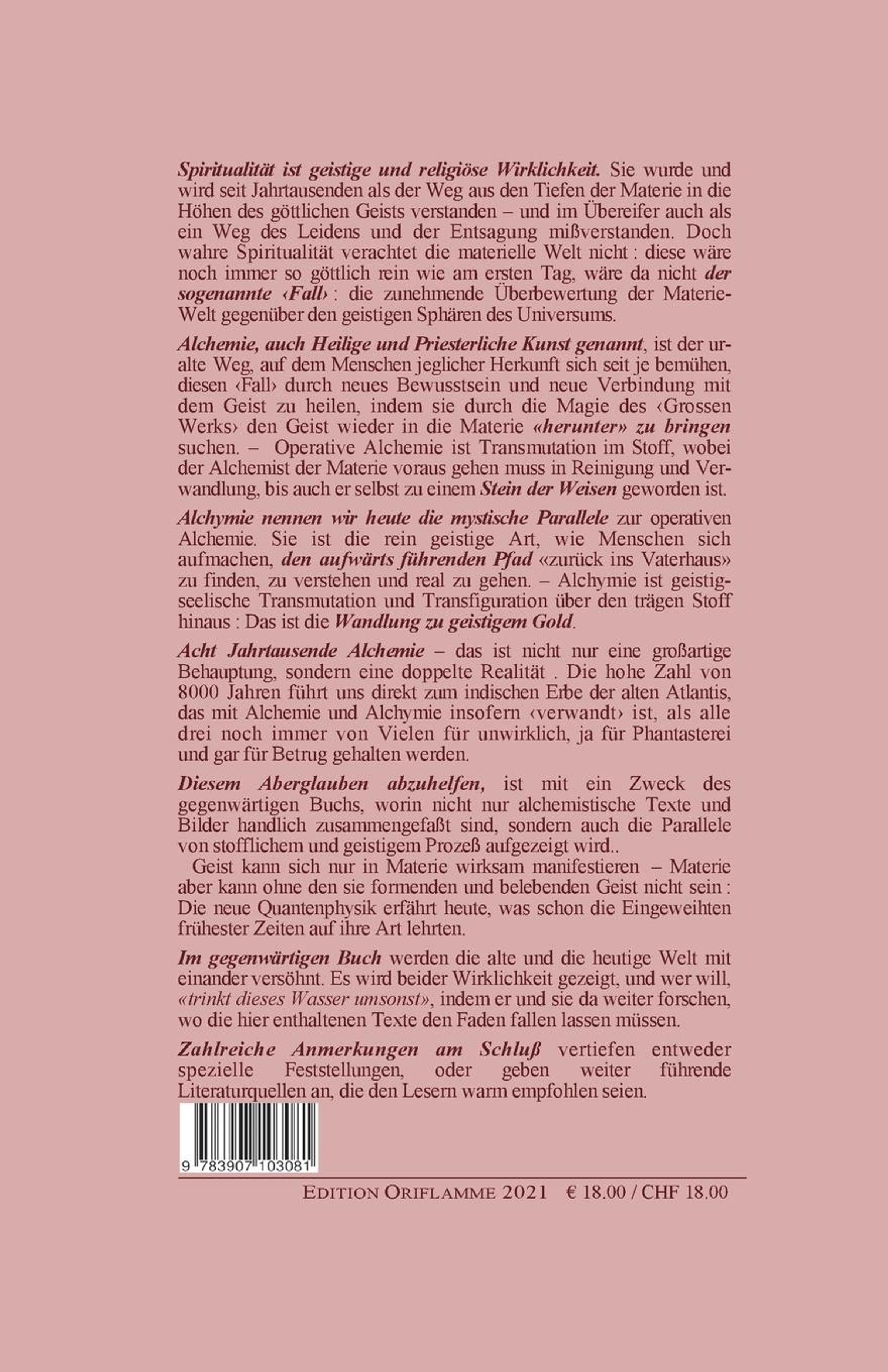 Diesem Aberglauben abzuhelfen, ist mit ein Zweck des gegenwärtigen Buchs, worin nicht nur alchemistische Texte und Bilder handlich zusammengefasst sind, sondern auch die Parallelen von stofflichem und geistigem Prozess aufgezeigt werden.