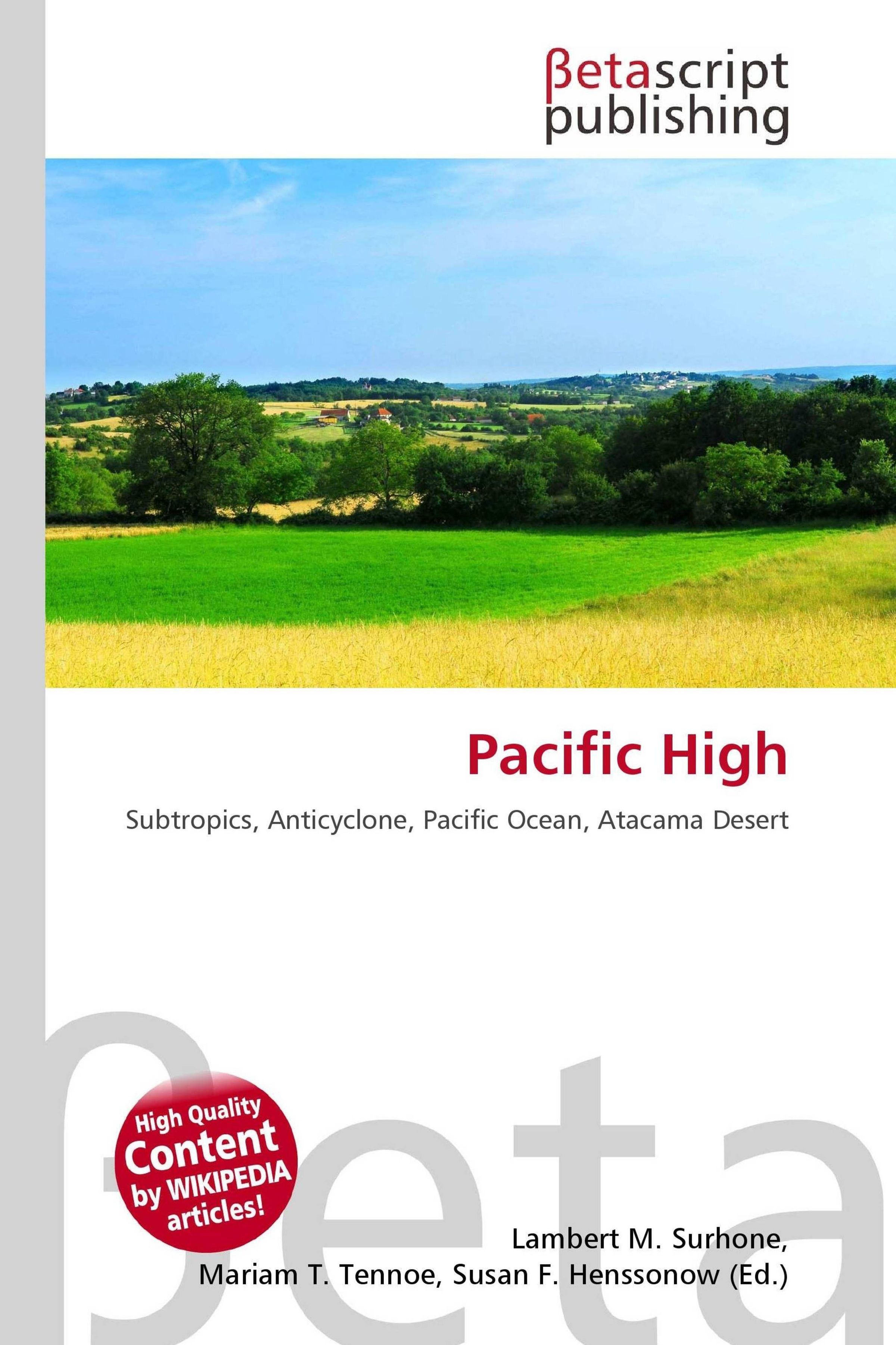 Please note that the content of this book primarily consists of articles available from Wikipedia or other free sources online. The Pacific High is a subtropical anticyclone located in the south east of the Pacific Ocean making the west coast of South America arid. Sechura and Atacama deserts as the whole climate of Chile are heavily influenced by this semi-permanent high pressure area. An anticyclone (that is, opposite to a cyclone) is a weather phenomenon defined by the National Weather Service's glossary as "A large-scale circulation of winds around a central region of high atmospheric pressure, clockwise in the Northern Hemisphere, anticlockwise in the Southern Hemisphere".