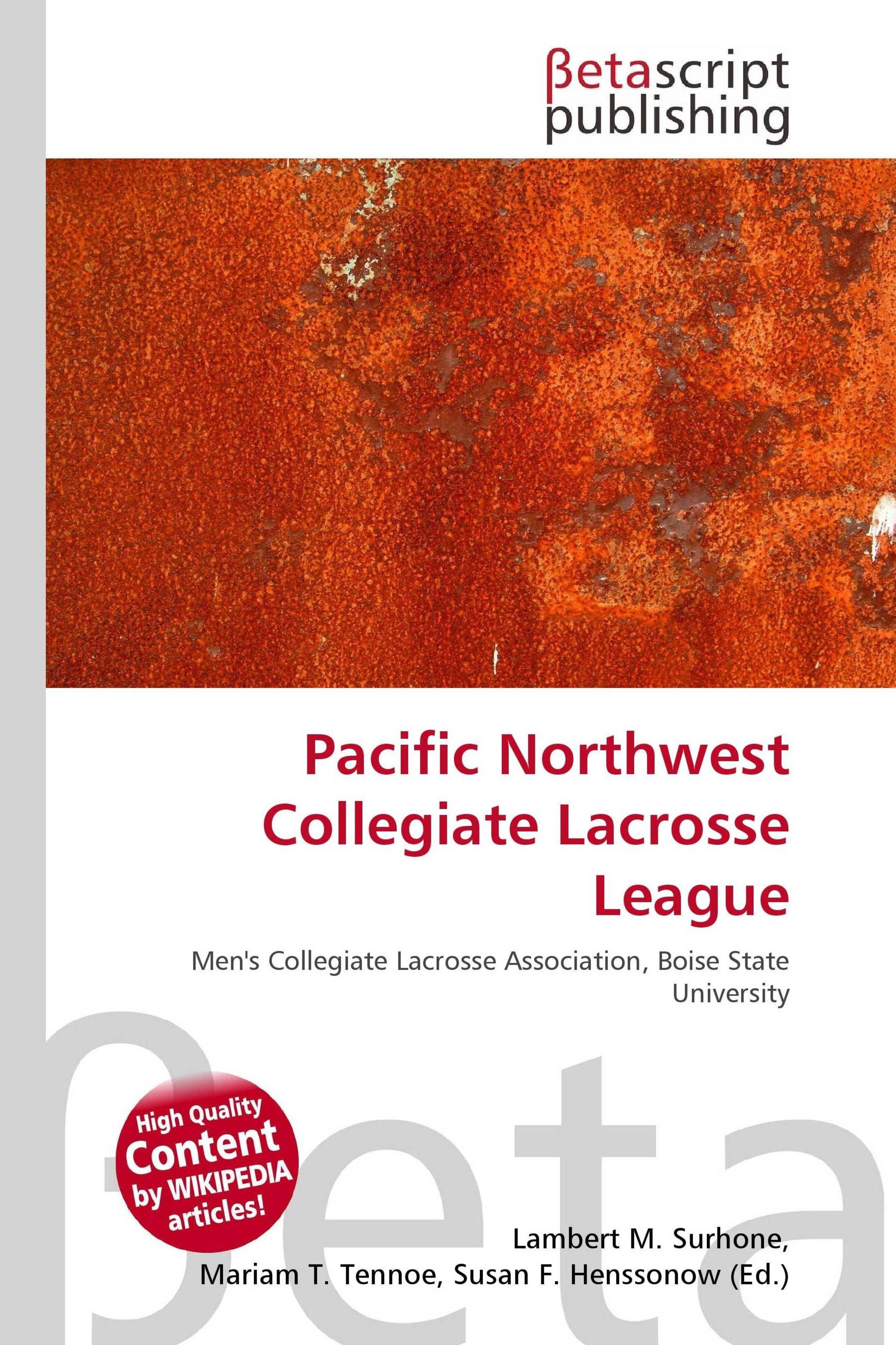 "Pacific Northwest Collegiate Lacrosse League" in roter Schrift, rauer orangebrauner Hintergrund und Verlagslogo oben., Buch