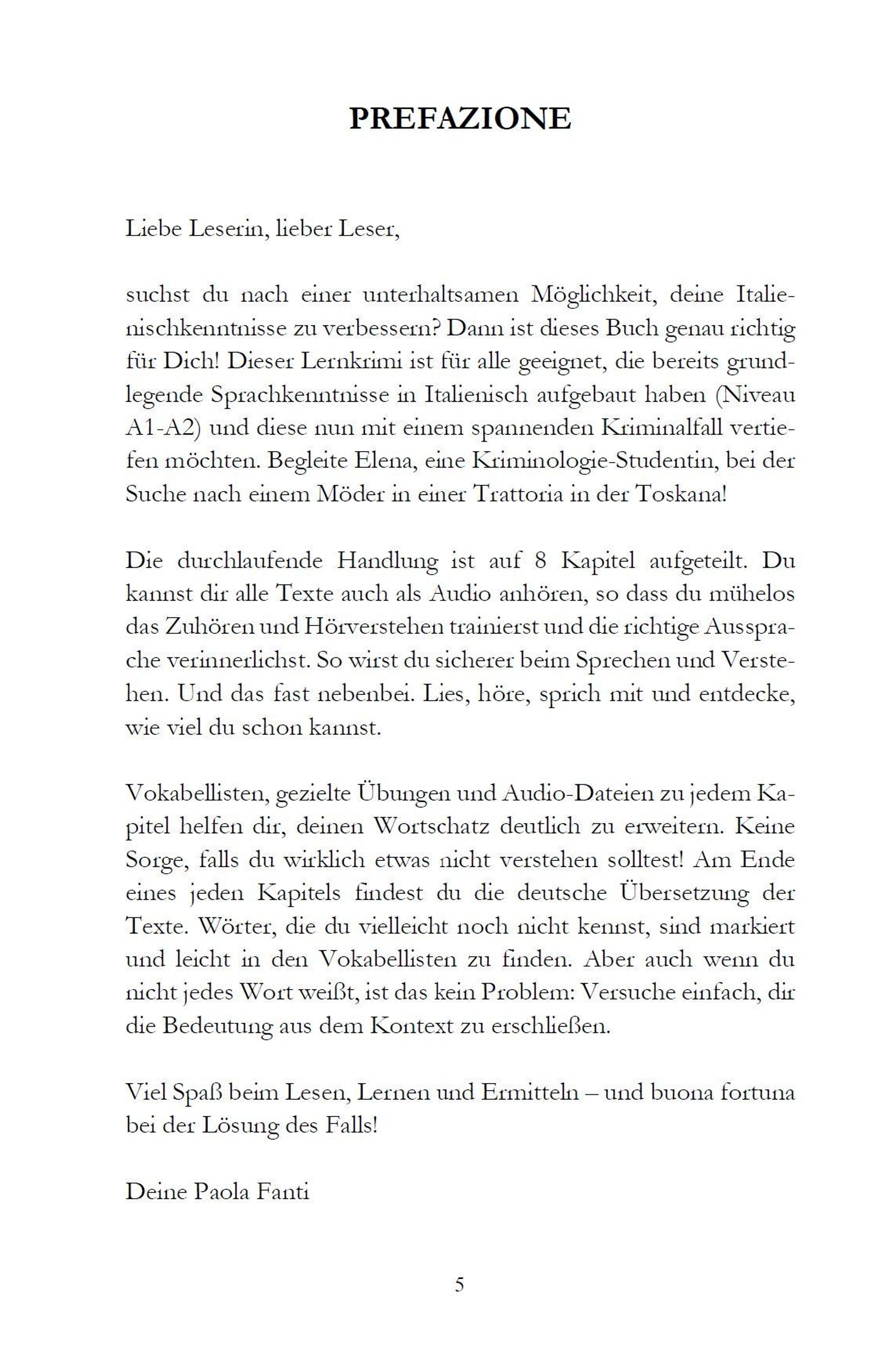 Dieser Lernkrimi bietet eine unterhaltsame Möglichkeit, Italienischkenntnisse in den Anfängerniveaus A1-A2 zu verbessern. Mit diesem fesselnden Kriminalfall mitten in Italien können Leser*innen ihren Wortschatz erweitern und durch aktives Lesen, Hören, Mitsprechen ihr Italienisch festigen. Die authentischen Dialoge erleichtern dir das Verständnis und fördern den praktischen Einsatz im Alltag.