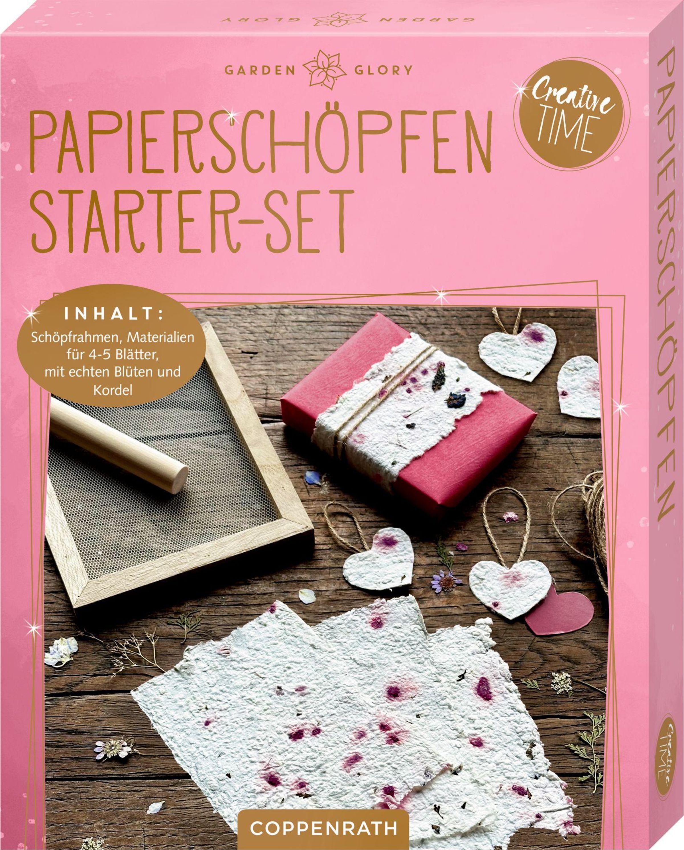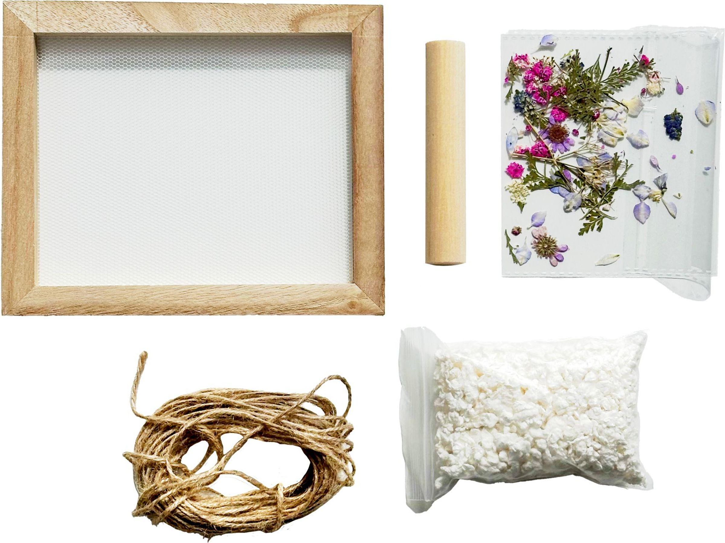 Das geschöpfte Papier lässt sich mit getrockneten Gräsern und Blüten wunderschön verzieren und im Handumdrehen zu schönen Anhängern und Lesezeichen oder zur Verzierung von Karten und Geschenken verarbeiten. Ideal für alle, die Kreativität lieben und Entspannung suchen - einfach auspacken und loslegen!