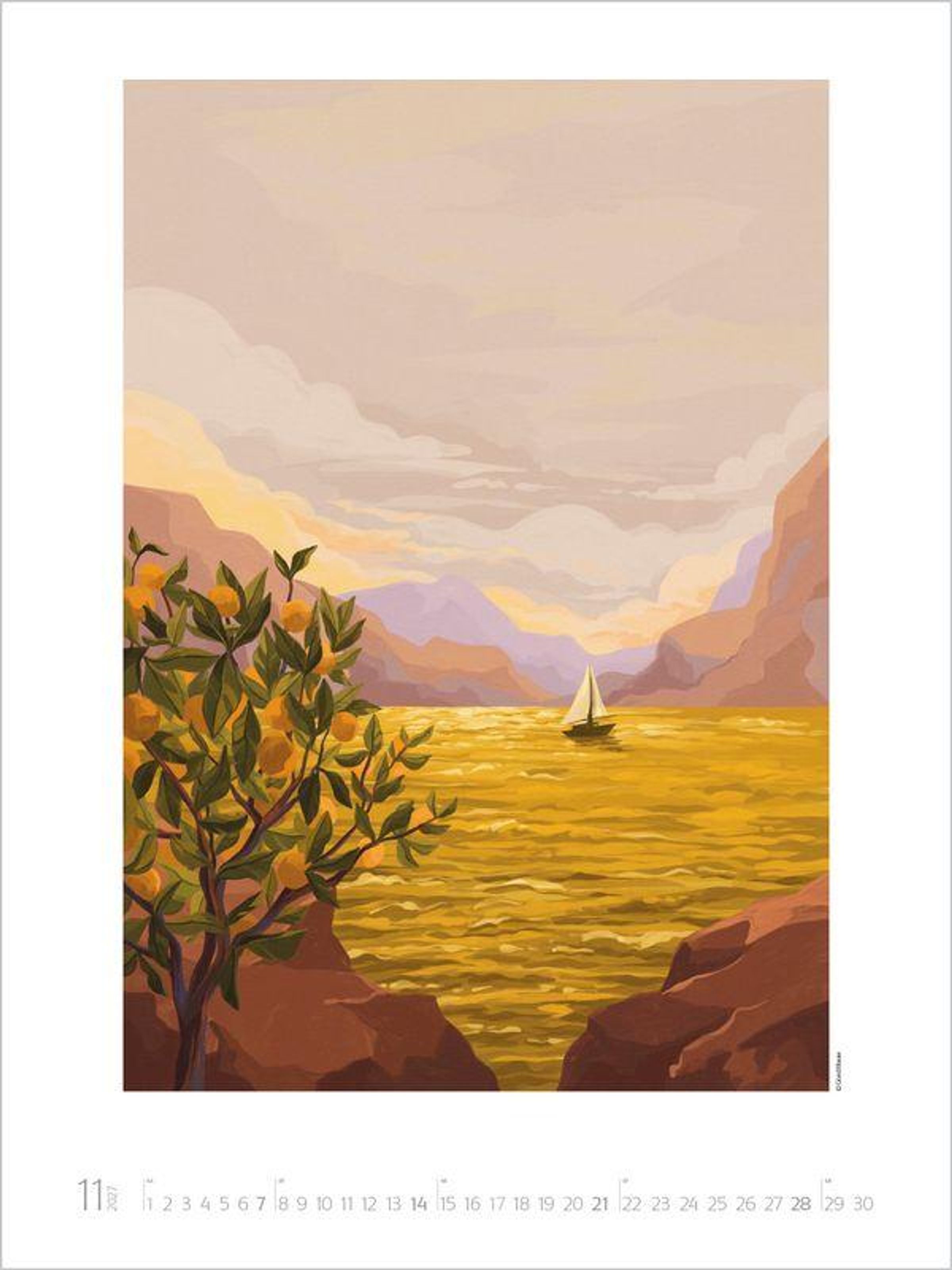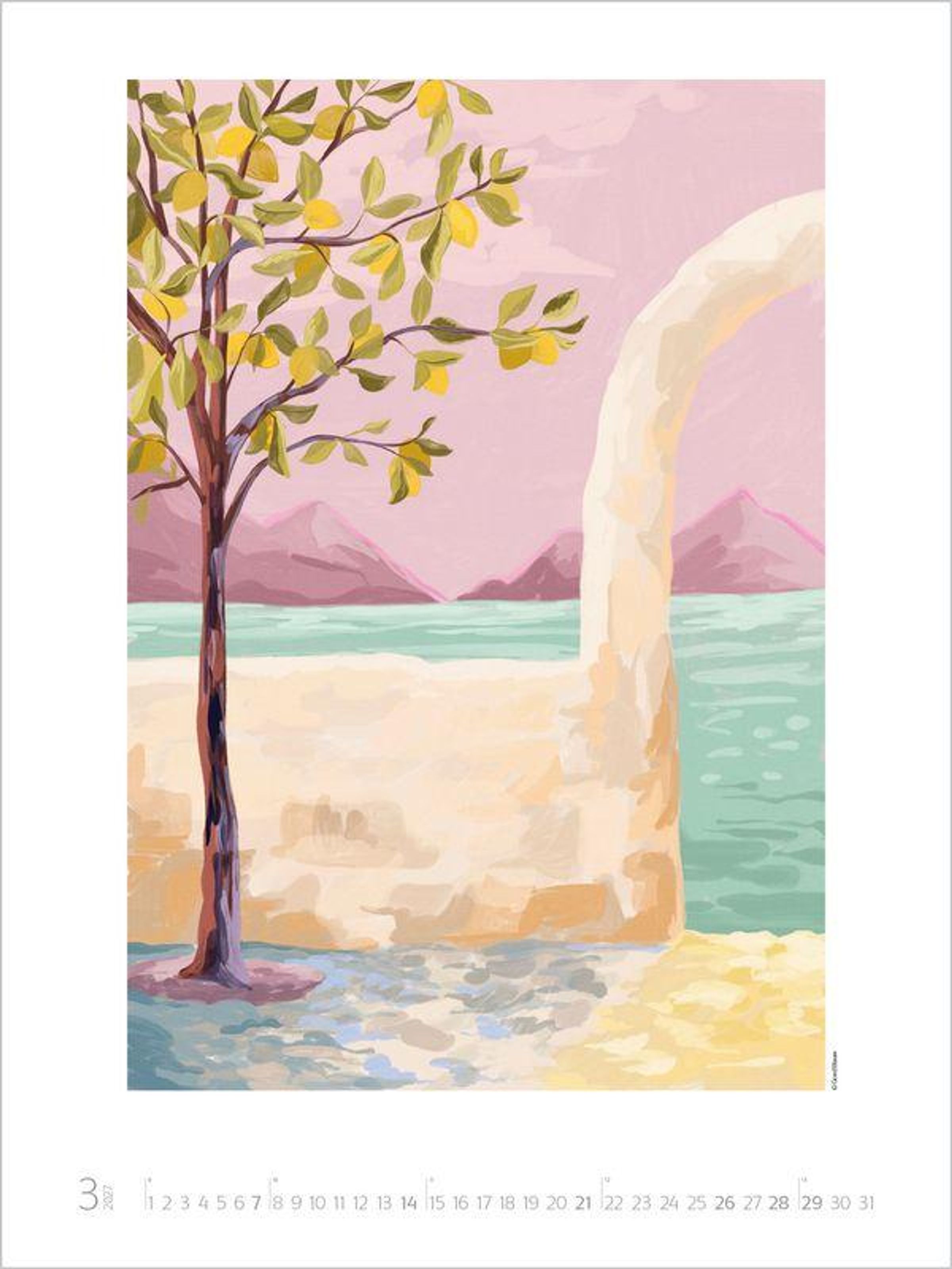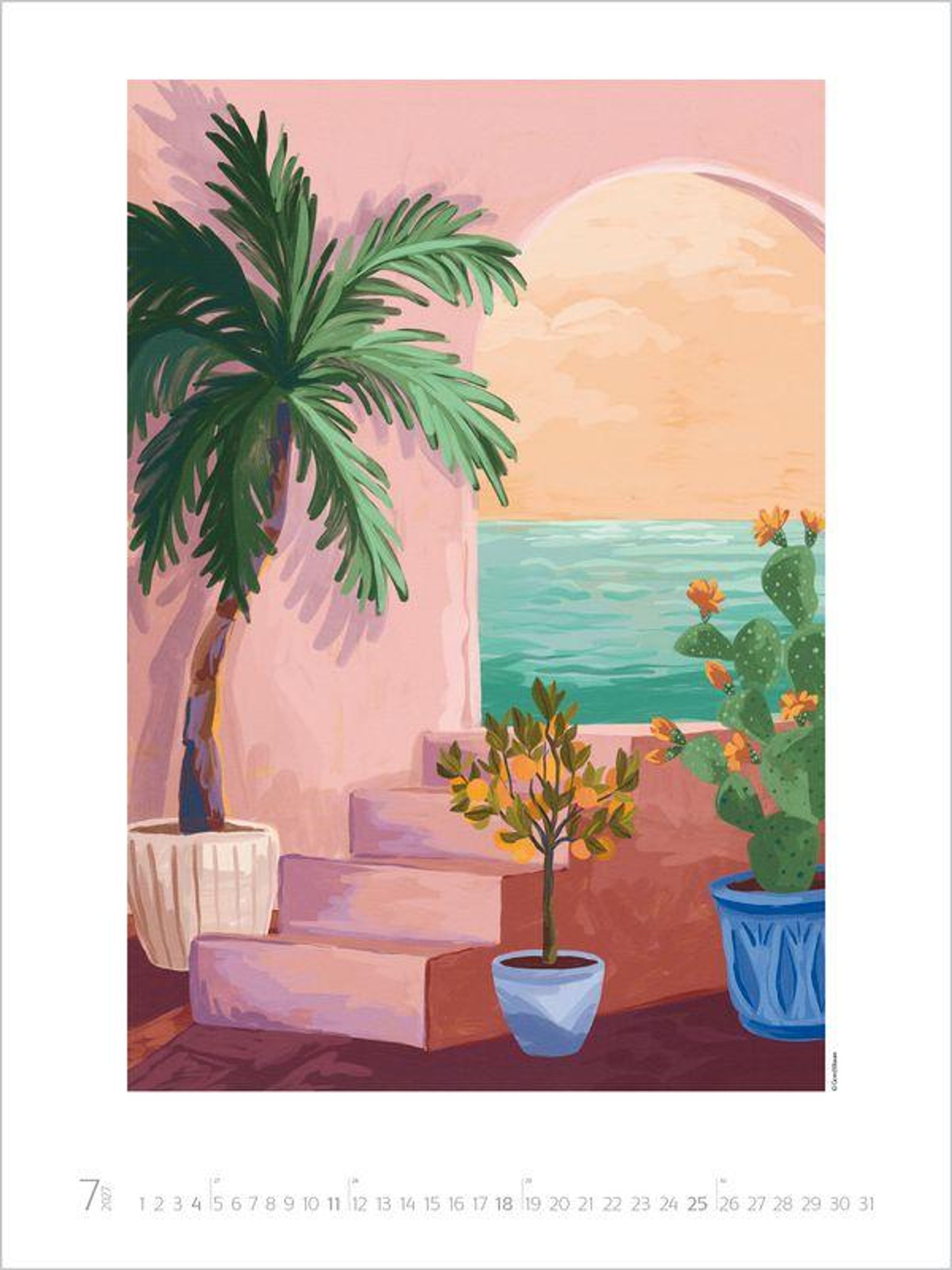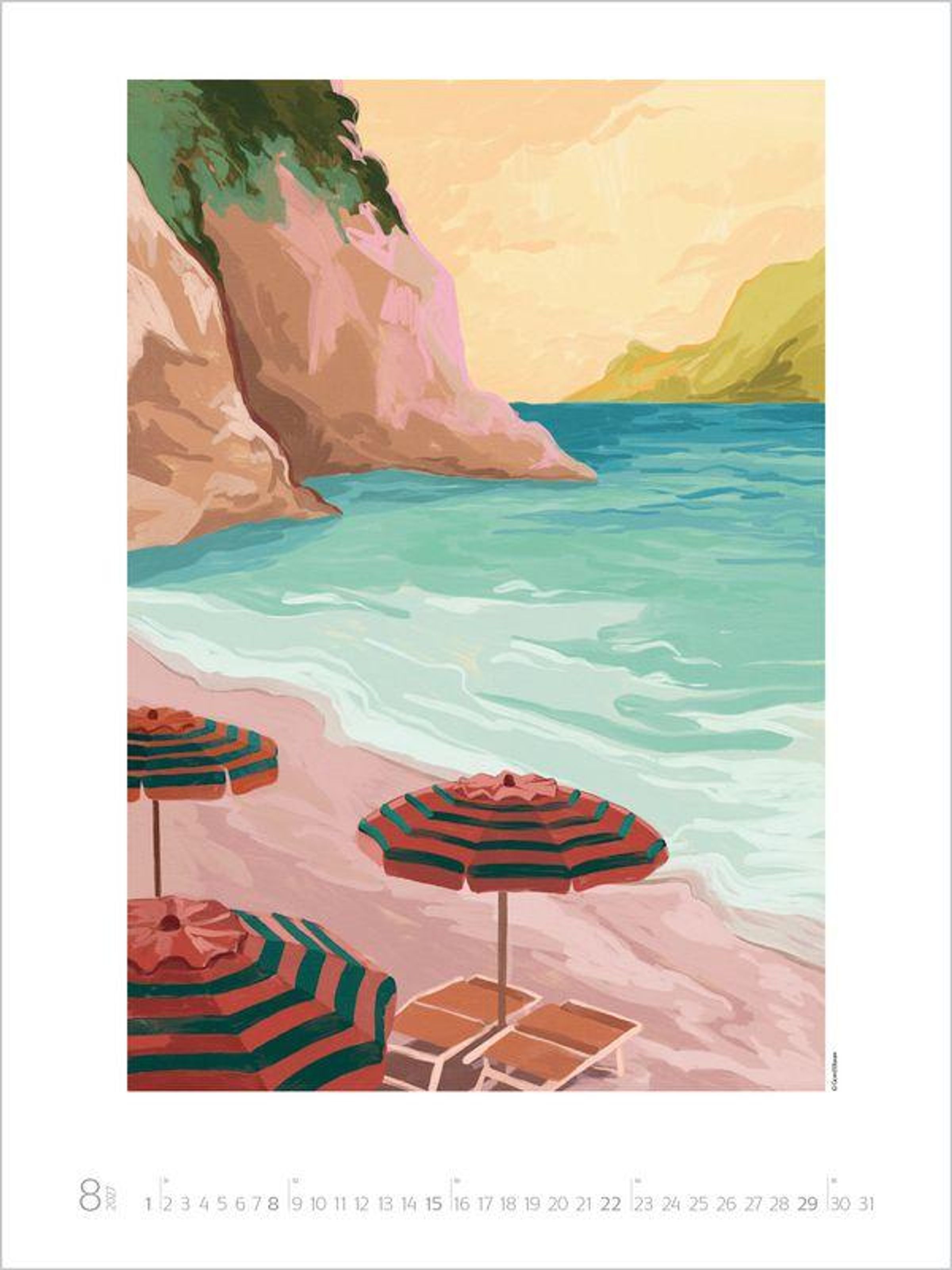 In der Welt des Künstlerinnenduos Goed Blauw entfalten sich idyllische Oasen, malerische Küsten und Augenblicke von himmlischer Ruhe zu einem Paradies, das die Fantasie beflügelt. Mit strahlenden Farben und Formen, die das Auge sanft schweifen lassen, lädt dieser Kalender dazu ein, innezuhalten und den eigenen Sehnsüchten zu frönen. Die beiden Illustratorinnen aus den Niederlanden zaubern farbenprächtigen Wandschmuck der Extraklasse, der die Augen von Groß und Klein zum Leuchten bringt - Kunst, die zum Träumen einlädt und Ruhe im Alltag schenkt.