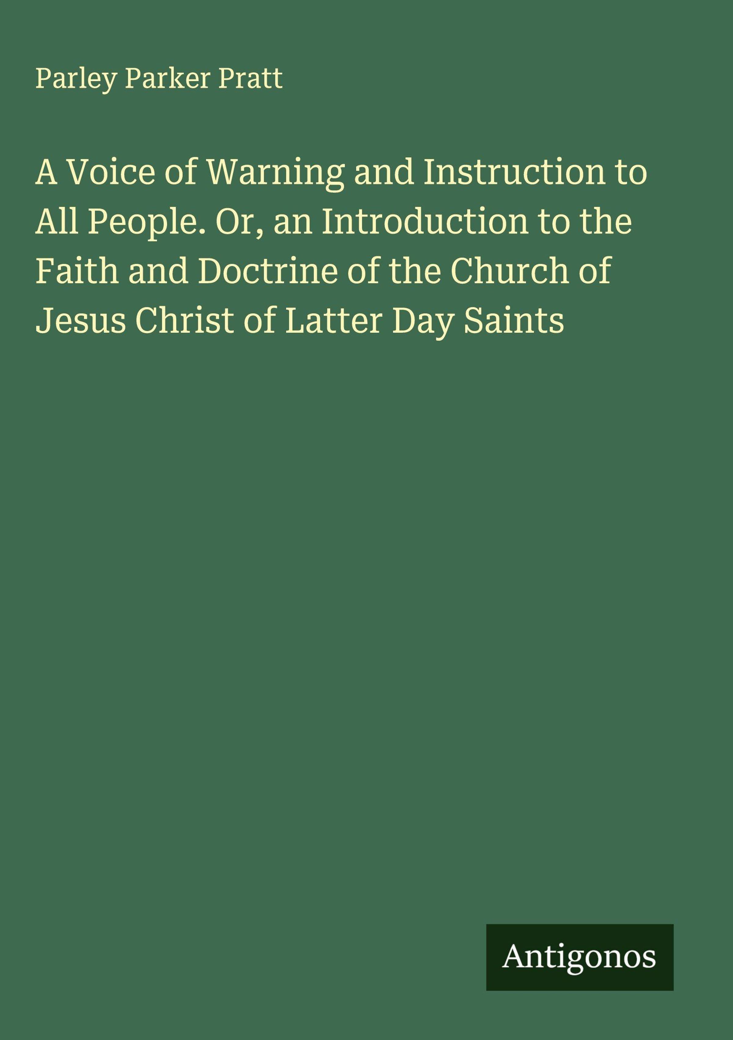 A Voice of Warning and Instruction to All People. Or, an Introduction to the Faith and Doctrine of the Church of Jesus Christ of Latter Day Saints