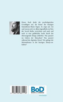 Dieses Buch deckt die psychologischen Grundlagen auf, die hinter der heutigen Smartphone-Manie liegen. Es zeigt auf, wie und warum sich vor allem Jugendliche im Netz der Social Media verstricken und nach und nach in eine gefährliche Sucht durch das überzeugende Design abdriften. Was passiert im Gehirn der Menschen? Was passiert während des digitalen Detox? Wie gelingt der Minimalismus in der heutigen Always-on-Kultur?