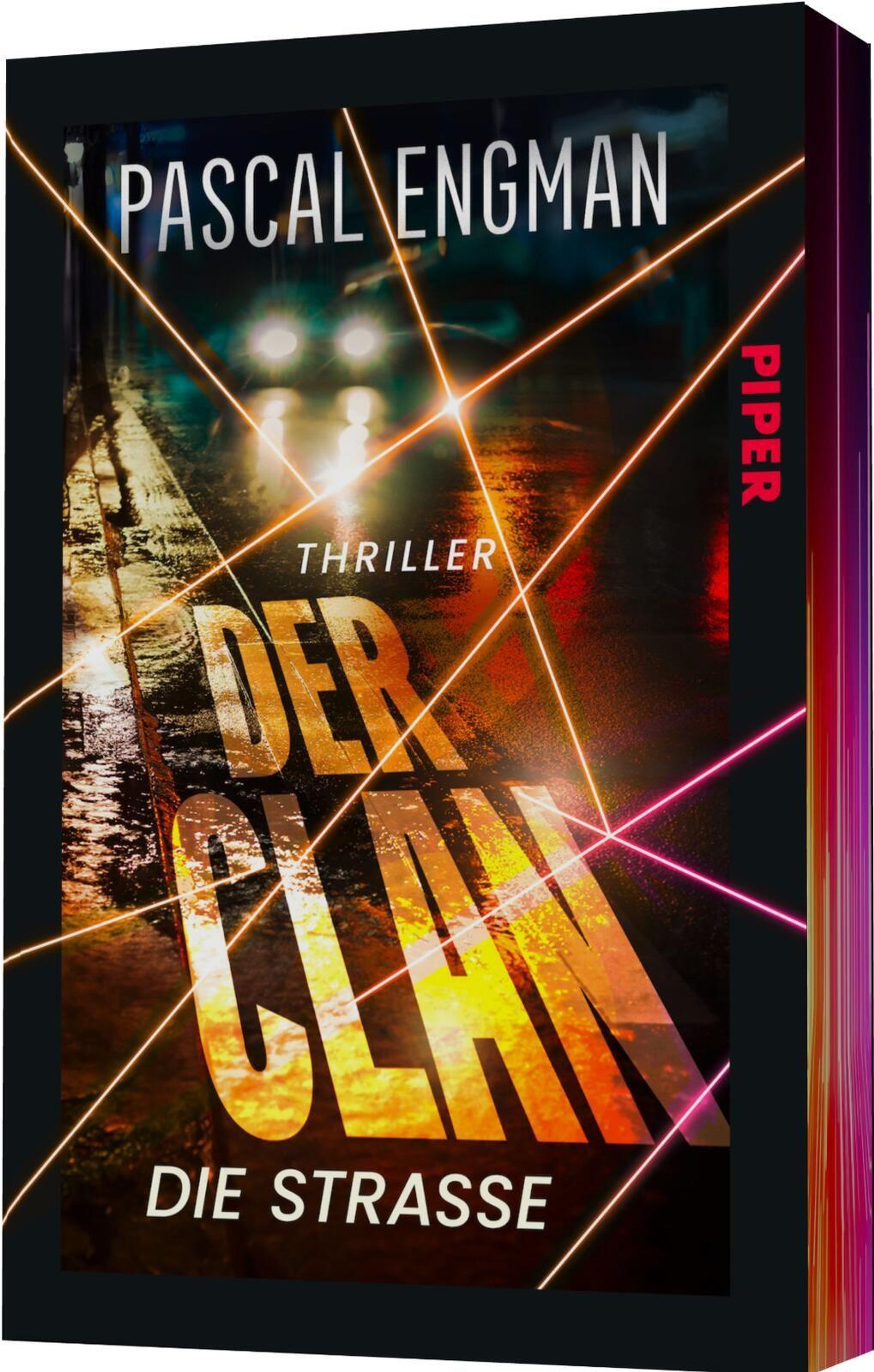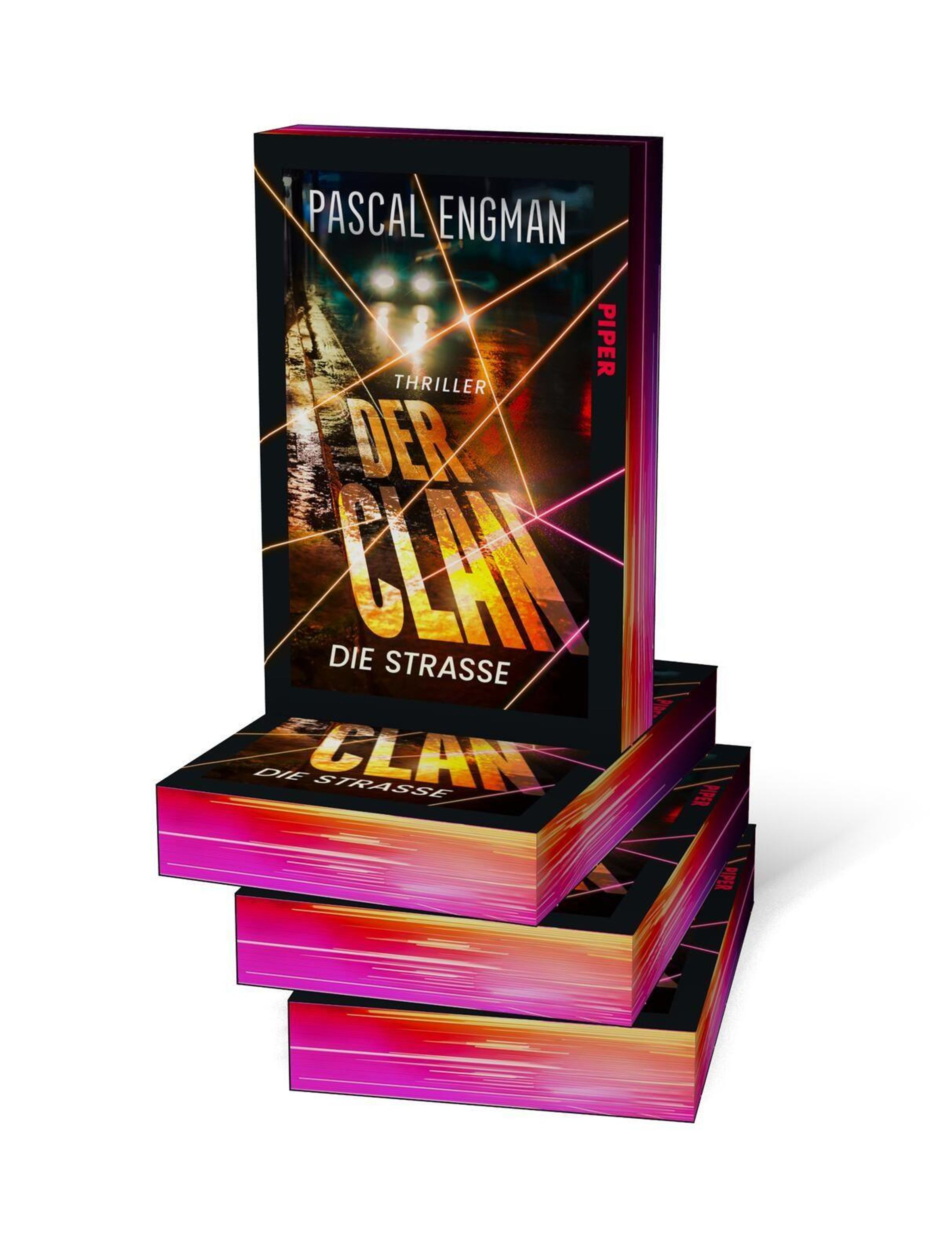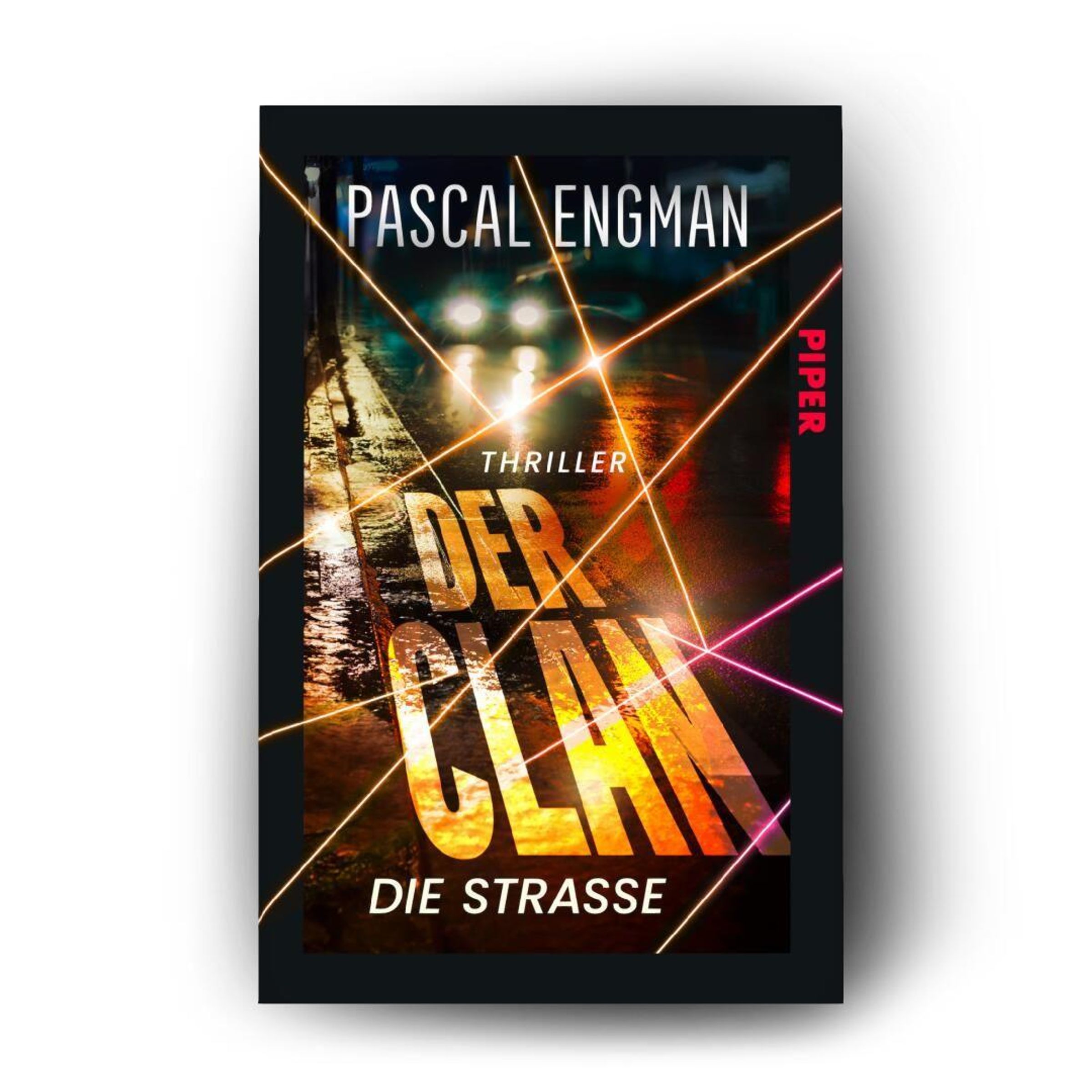 Text: "Pascal Engman", "Thriller", "Der Clan", "Die Strasse", "Piper". Cover in dunklen Tönen mit Lichtstreifen., Buch