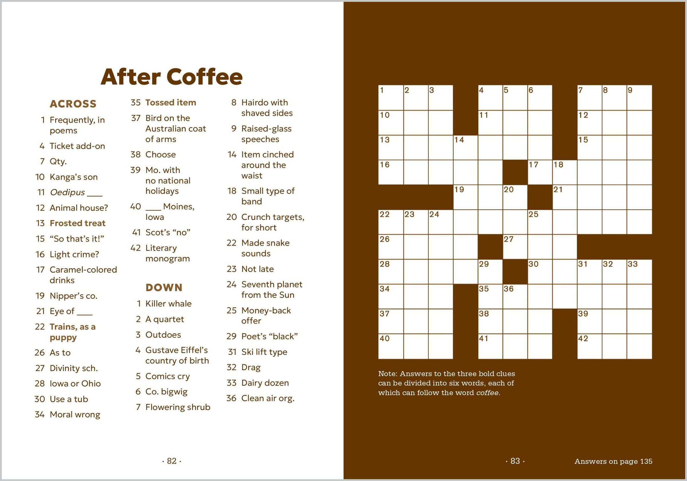 - Coffee-Themed Crosswords, Word Searches, Sudoku, Mazes, Quizzes, Brainteasers, and Trivia