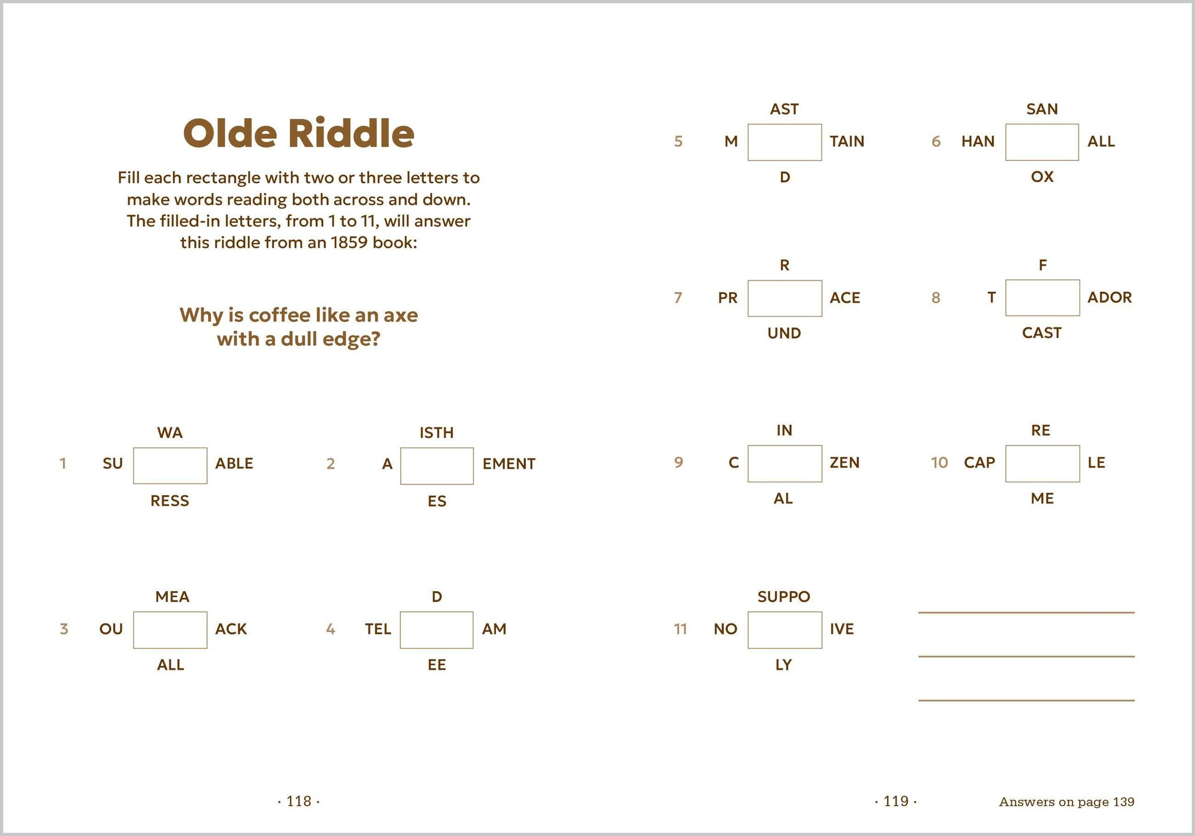 Wake up your brain with this engaging collection of word puzzles, trivia, history, and quotes about the fascinating world of coffee.