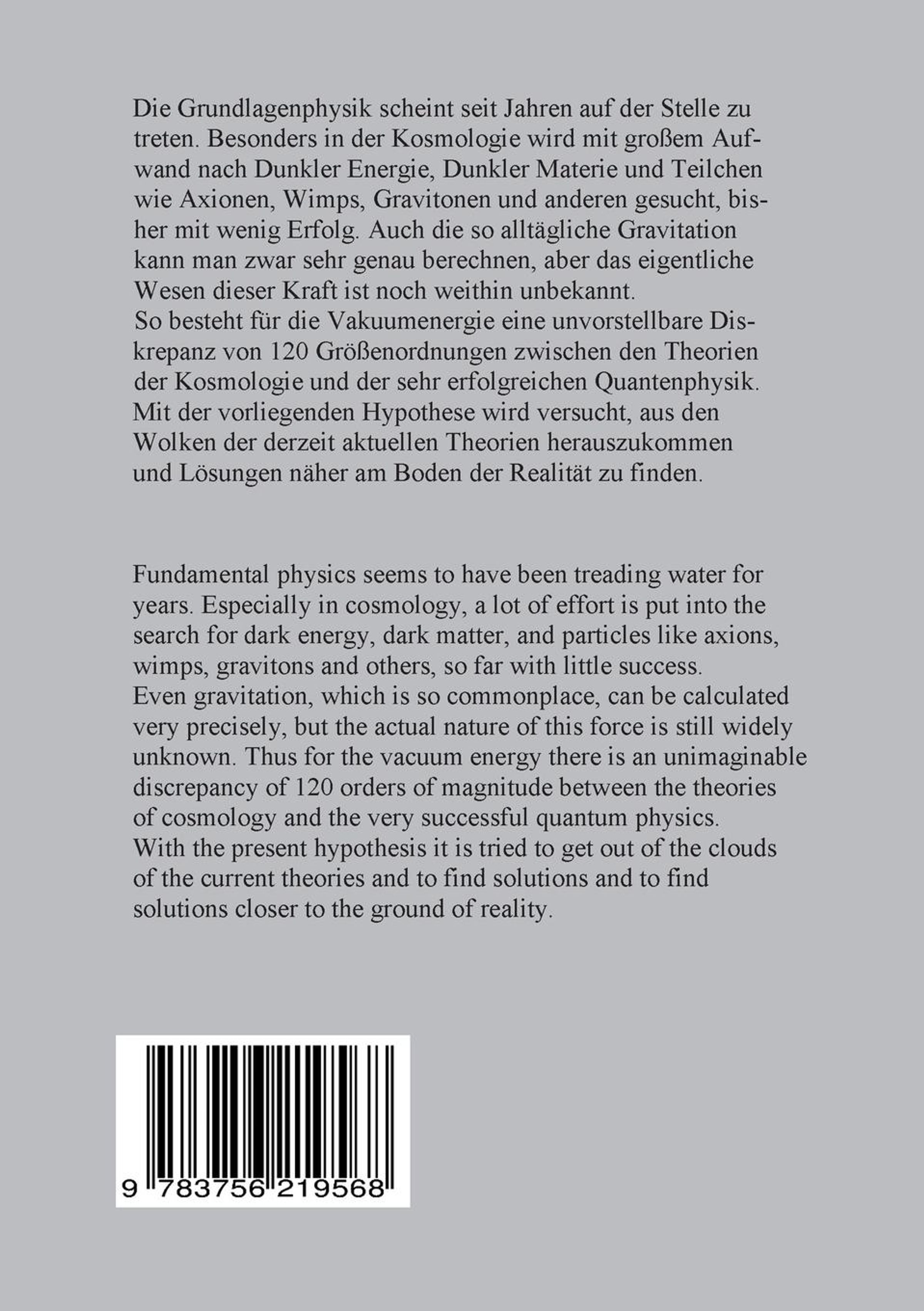 Gravitation etwas anders erklärt und was daraus folgt. Eine Hypothese, die vielleicht zur Lösung der Rätsel in Kosmologie und Quantenphysik beitragen kann. Seit vielen Jahren kommt die Grundlagenphysik trotz teils gigantischem Aufwand mit den aktuellen Theorien nicht von der Stelle. So ist Dunkle Energie, Dunkle Materie und auch das eigentliche Wesen der Schwerkraft noch völlig ungeklärt. Die Zeit ist deshalb reif für neue Ideen. Gravitation ist keine eigenständige Kraft, sondern eine Reaktion der Vakuumenergie auf das Vorhandensein von Materie. Die Massenträgheit ist ein bei Beschleunigungen auftretender Widerstand der Schwerpunktverschiebung im Vakuumenergiefeld. Daraus ergeben sich Auswirkungen unter anderem auch auf die Gravitationskonstante, Lichtgeschwindigkeit und Ganggenauigkeit von Uhren.