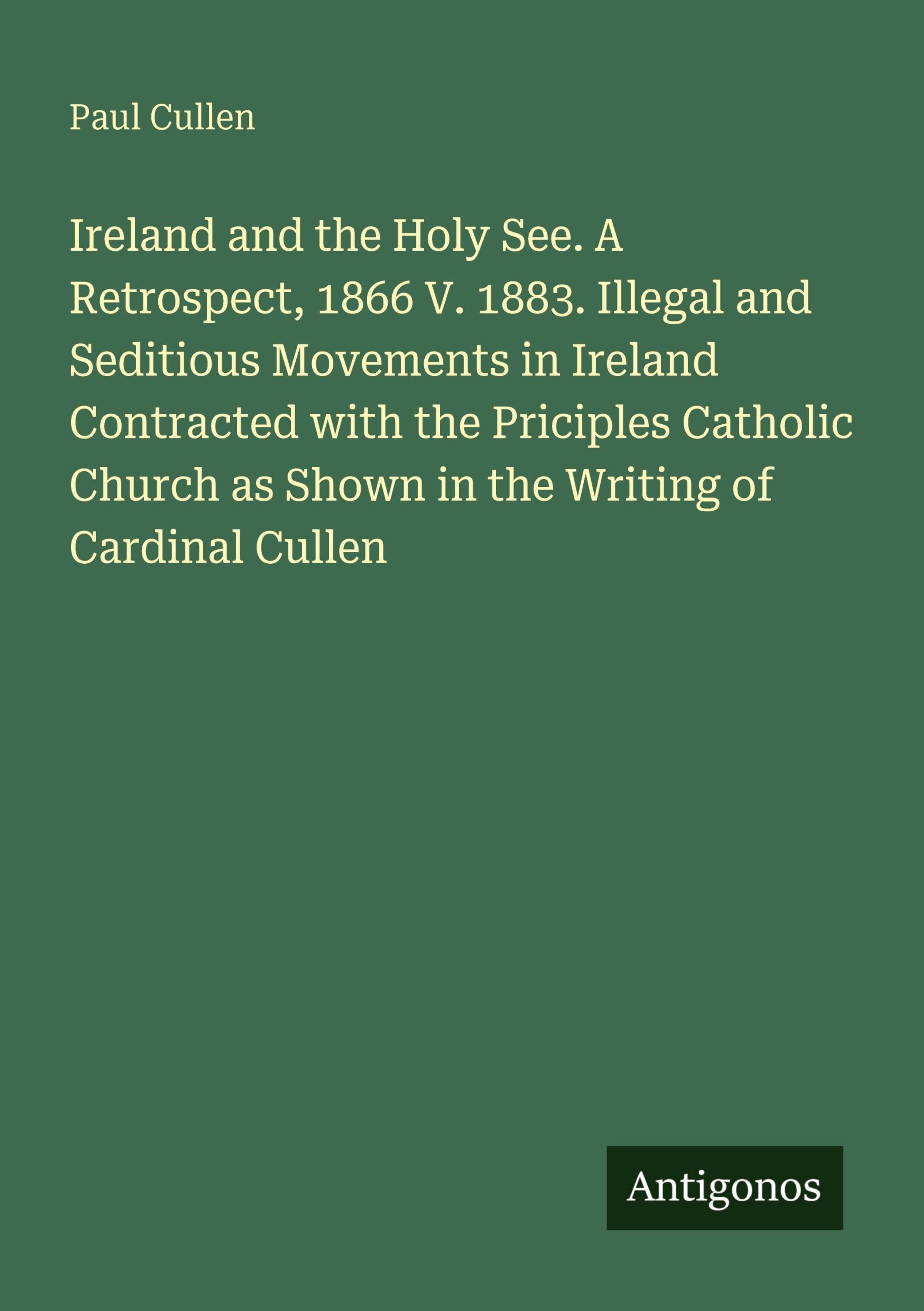 Paul Cullen: Ireland and the Holy See. A Retrospect, 1866 V. 1883. Illegal and Seditious Movements in Ireland..., Kartoniert / Broschiert