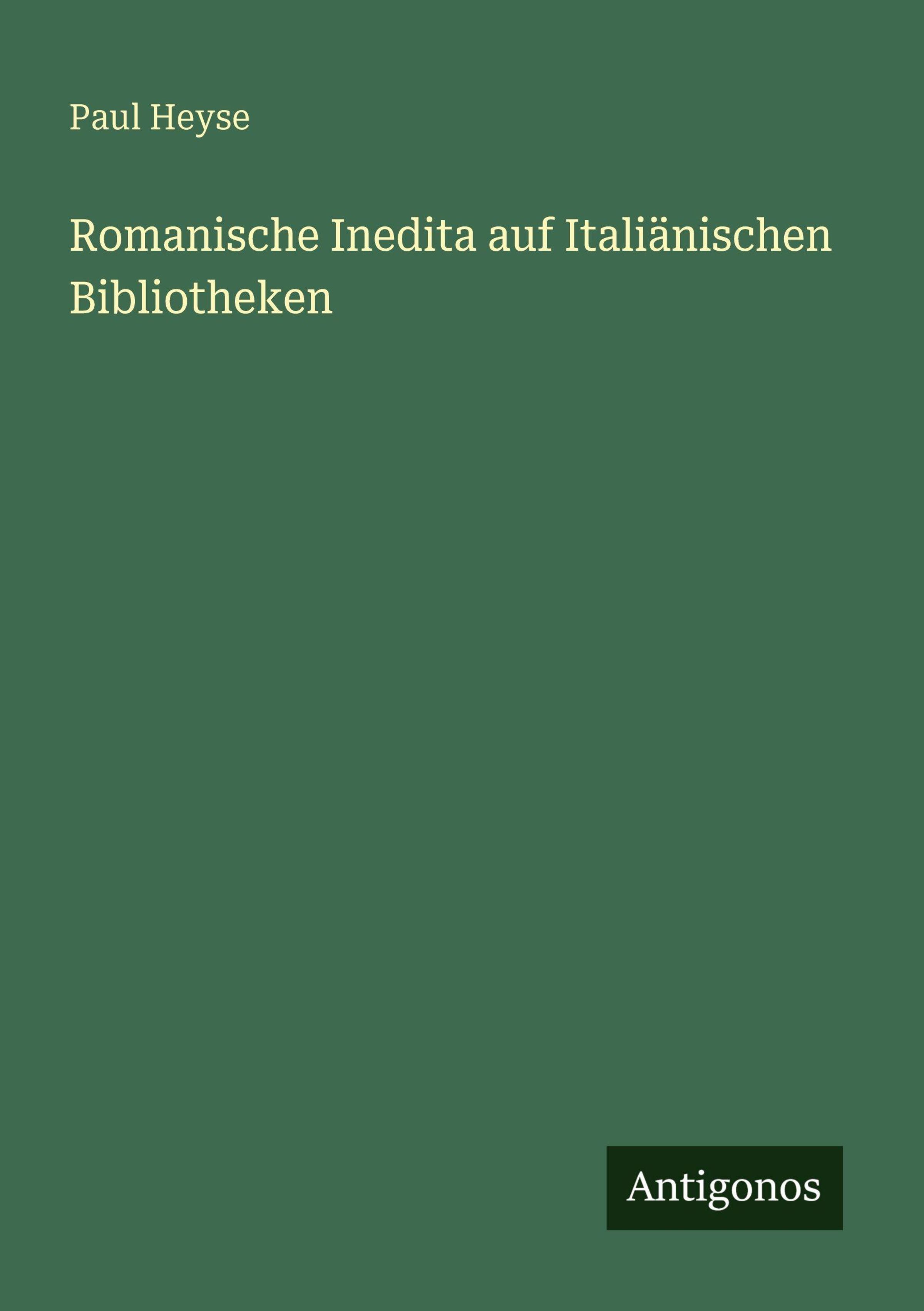 Paul Heyse: Romanische Inedita auf Italiänischen Bibliotheken, Kartoniert / Broschiert