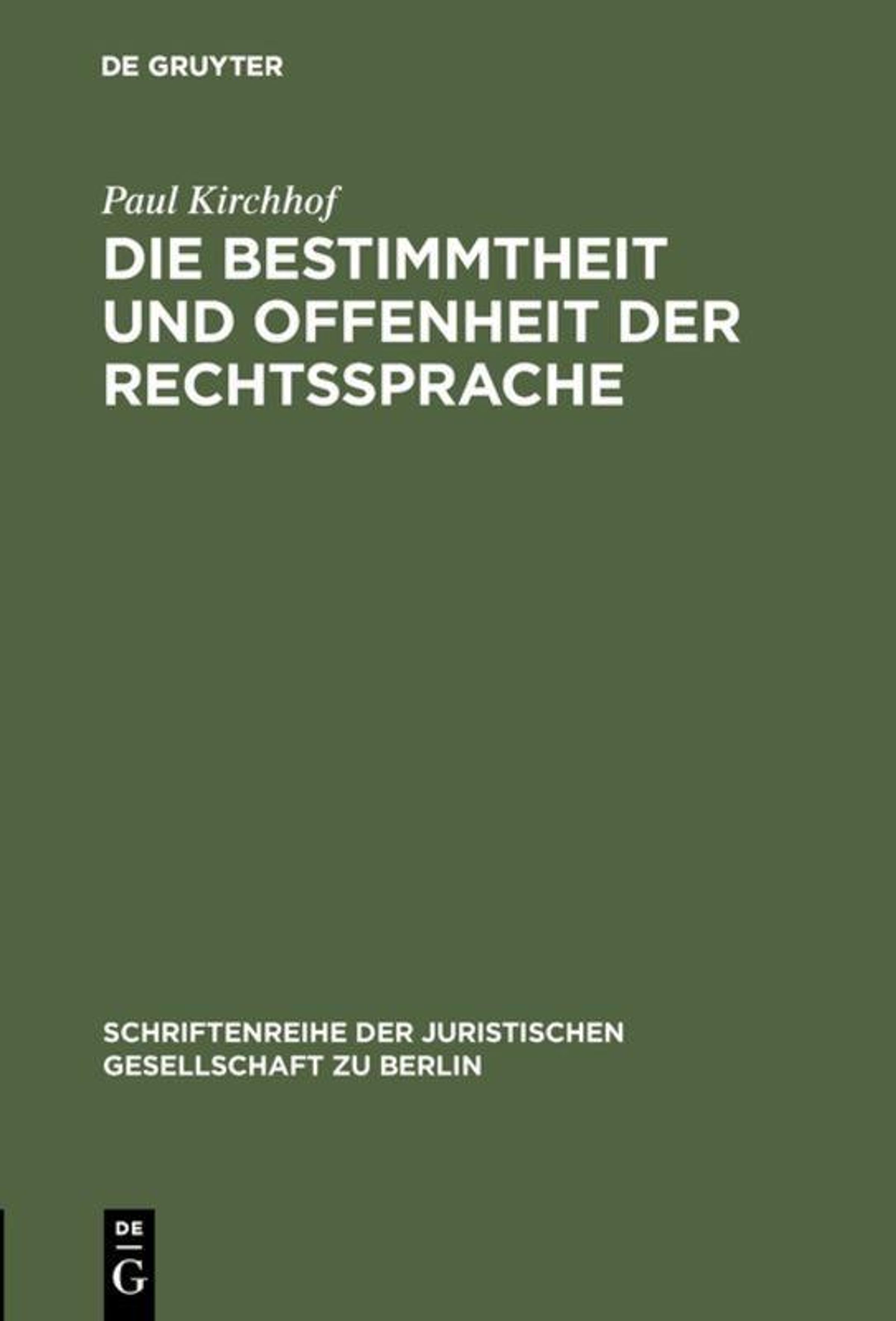 Paul Kirchhof: Die Bestimmtheit und Offenheit der Rechtssprache, Gebunden