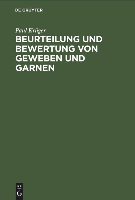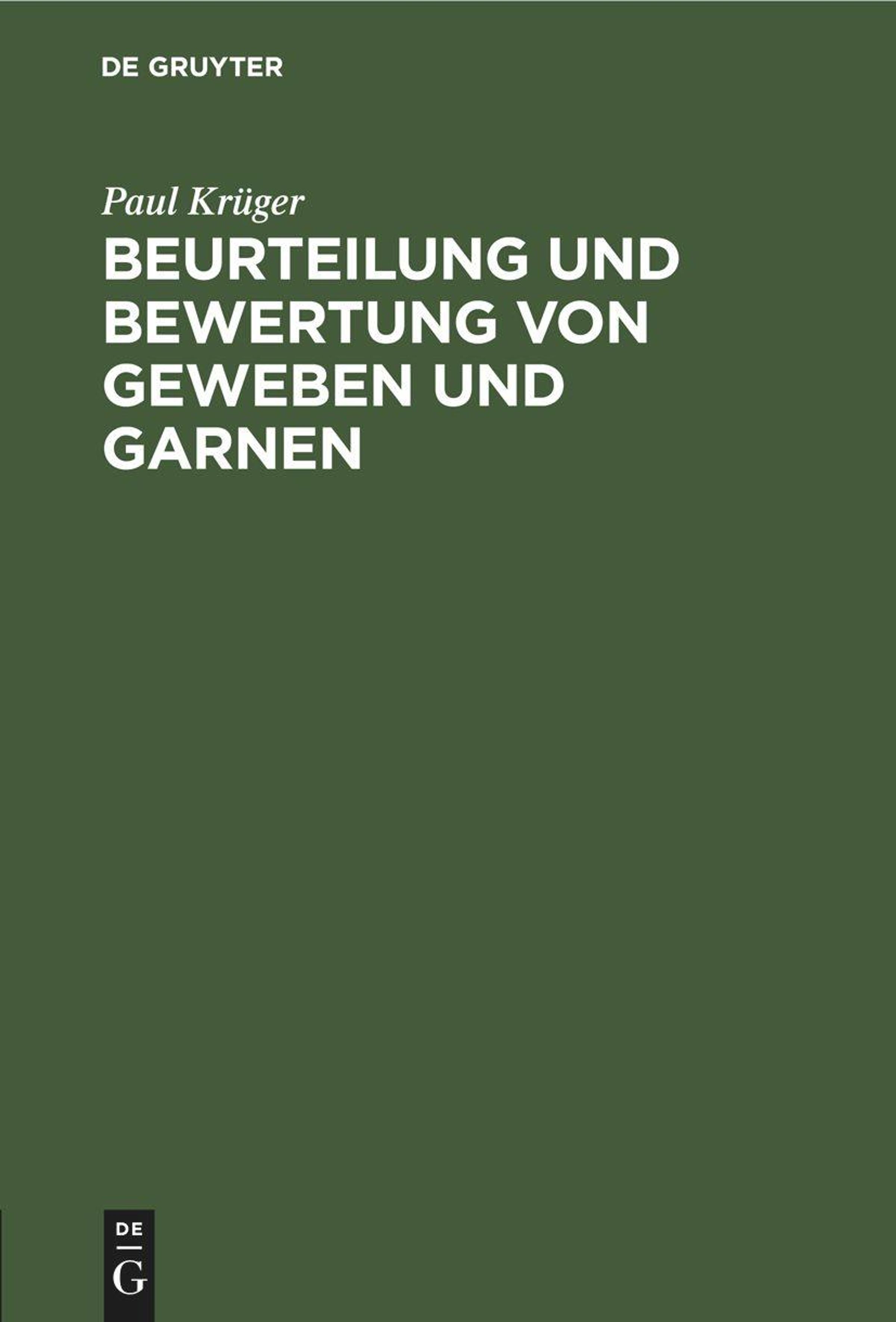 Paul Krüger: Beurteilung und Bewertung von Geweben und Garnen, Gebunden
