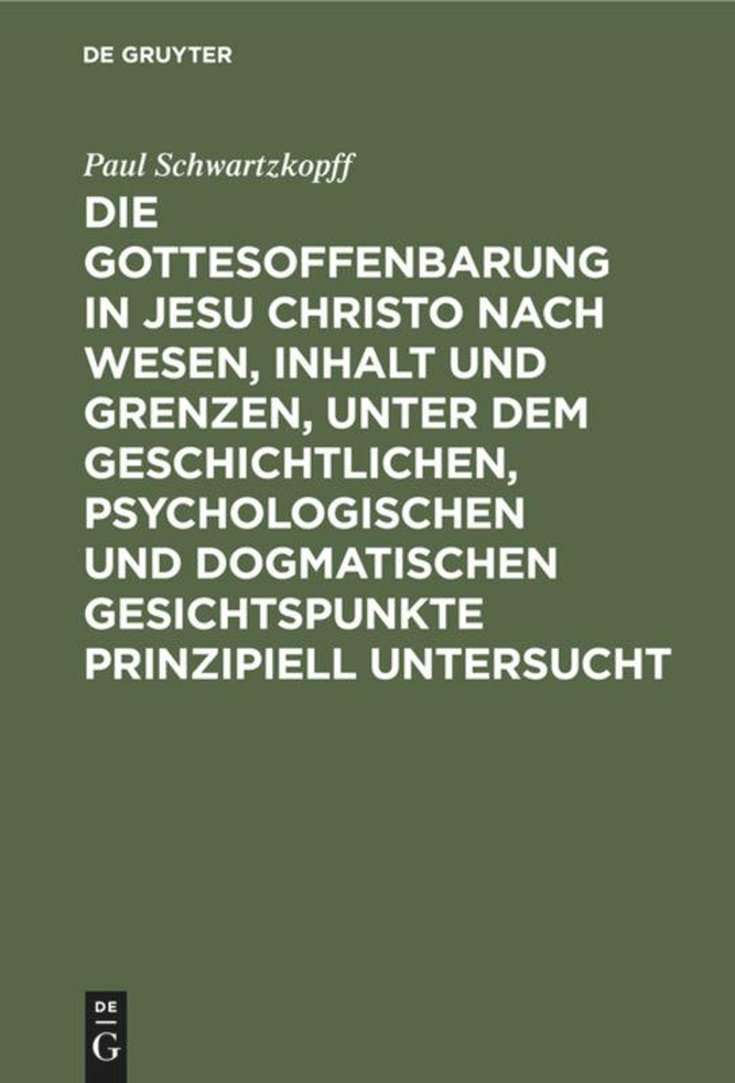 Die Gottesoffenbarung in Jesu Christo nach Wesen, Inhalt und Grenzen, unter dem geschichtlichen, psychologischen und dogmatischen Gesichtspunkte prinzipiell untersucht