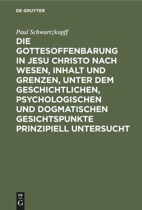 Paul Schwartzkopff: Die Gottesoffenbarung in Jesu Christo nach Wesen, Inhalt und Grenzen, unter dem..., Gebunden