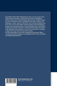 Paul Tillichs (1886-1965) Abhandlung Der Mut zum Sein ist eine seiner einflussreichsten Schriften, welche ihn einem breiten Lesepublikum bekannt machte. Das schmale Bändchen geht auf seine 'Dwight Harrington Terry Foundation Lectures on Religion in the Light of Science and Philosophy' zurück, welche er vom 30. Oktober bis 2. November 1950 an der Yale University gehalten hatte. In Der Mut zum Sein fasst Tillich zentrale Gedanken seines theologischen Gesamtwerkes brennpunktartig in seiner Reformulierung des Glaubensbegriffs als Mut zum Sein vor dem Hintergrund einer Deutung der modernen Gesellschaft zusammen. Werkgeschichtlich gehört die Schrift in die Spätphase seines Denkens, wie es in der Systematischen Theologie vorliegt, deren erster Band im Jahre 1951 erschien. Der klar geschriebene und mit einer Einleitung in das Denken Tillichs versehene Band führt prägnant in grundlegende Motive seiner Theologie und Religionsphilosophie ein.