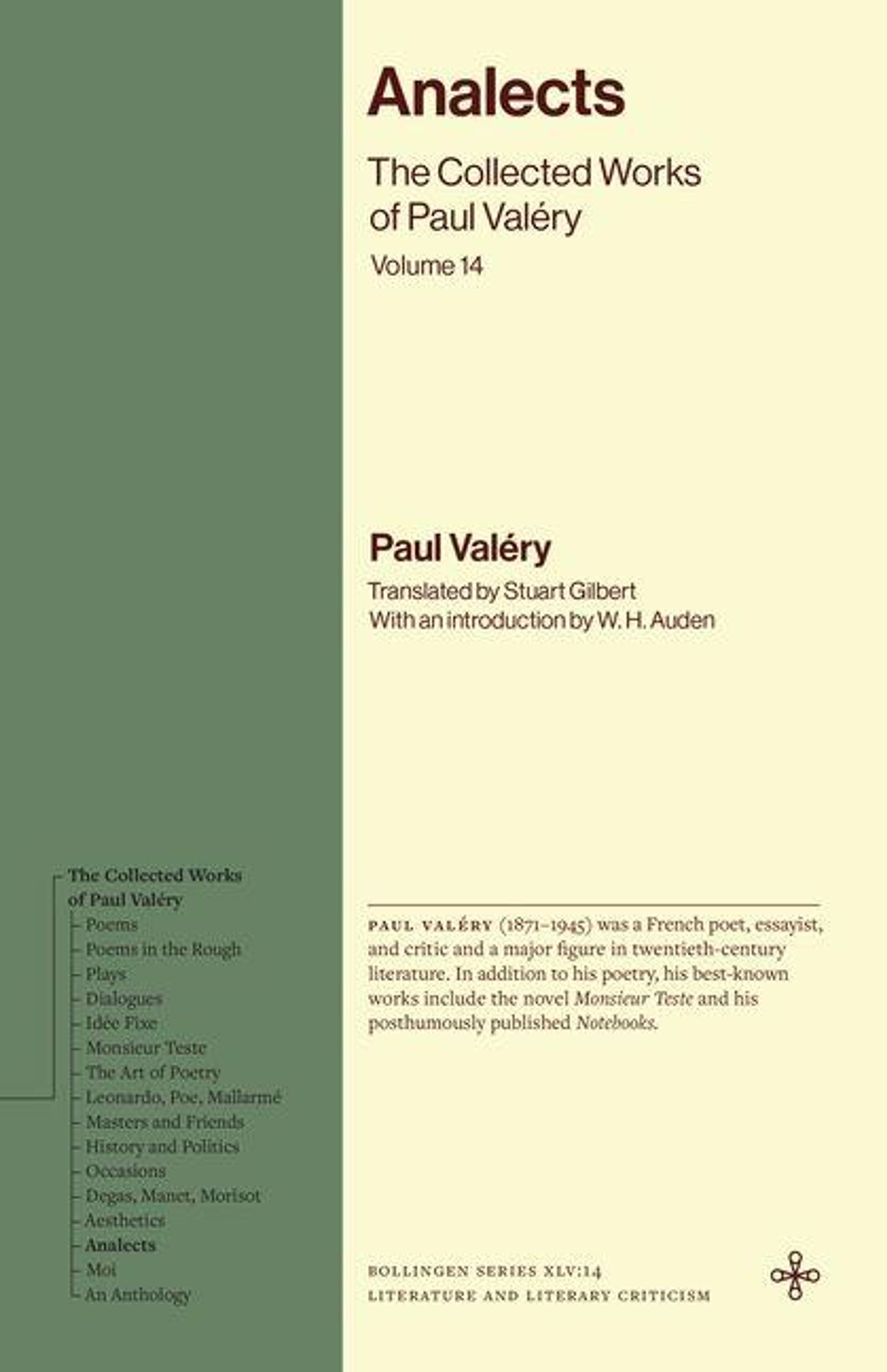 The Collected Works of Paul Valéry, the first collected edition of the writer in English, features new translations, the original French on facing pages for poetic works, and editorial notes.